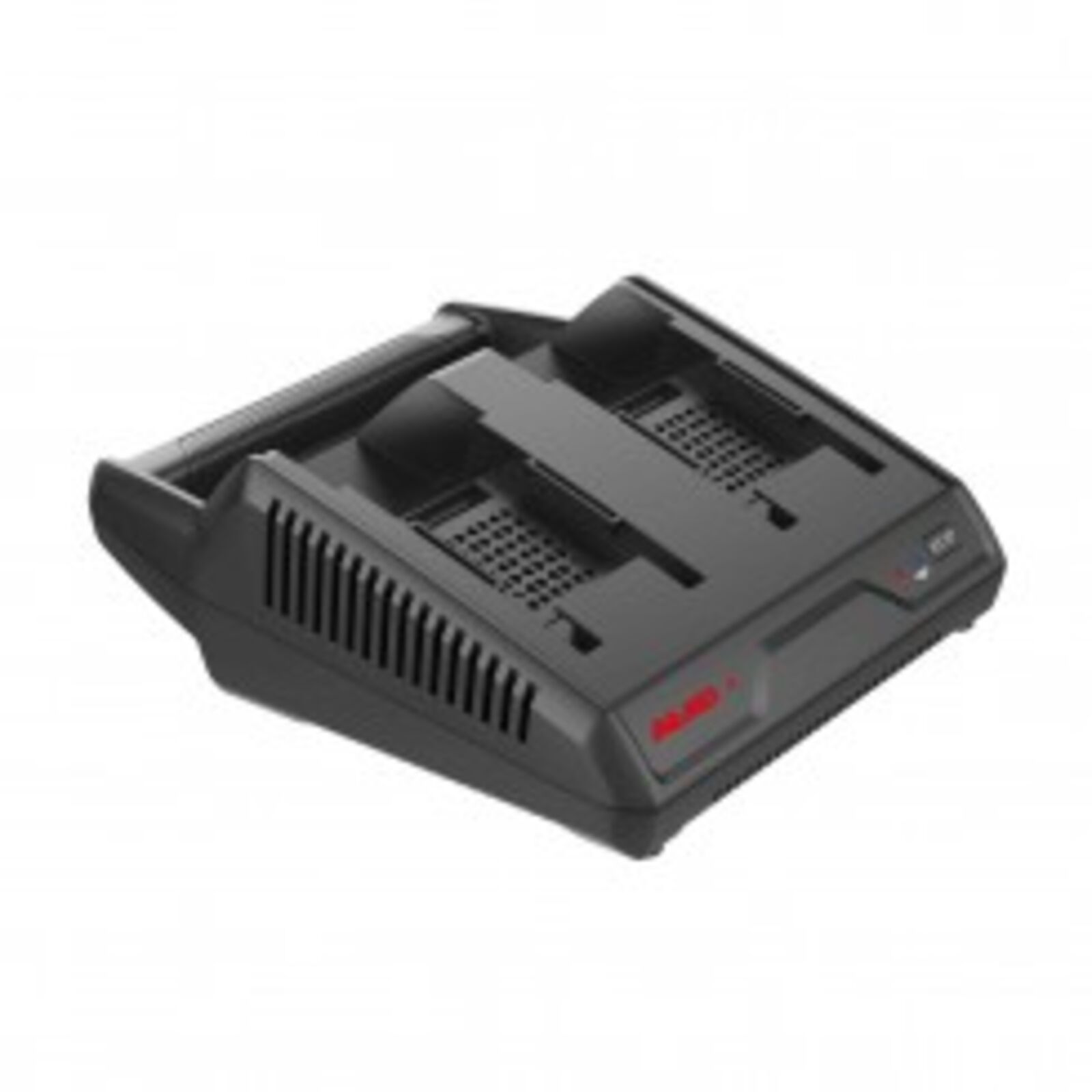 A dupla töltőt optimálisan egy hűtőventilátor temperálja. Két, egyenként 3 A-es akkumulátor töltővel egyszerre két 36 V-os akkumulátor tölthető, így semmi sem akadályozza a hosszú távú kerti munkákat.