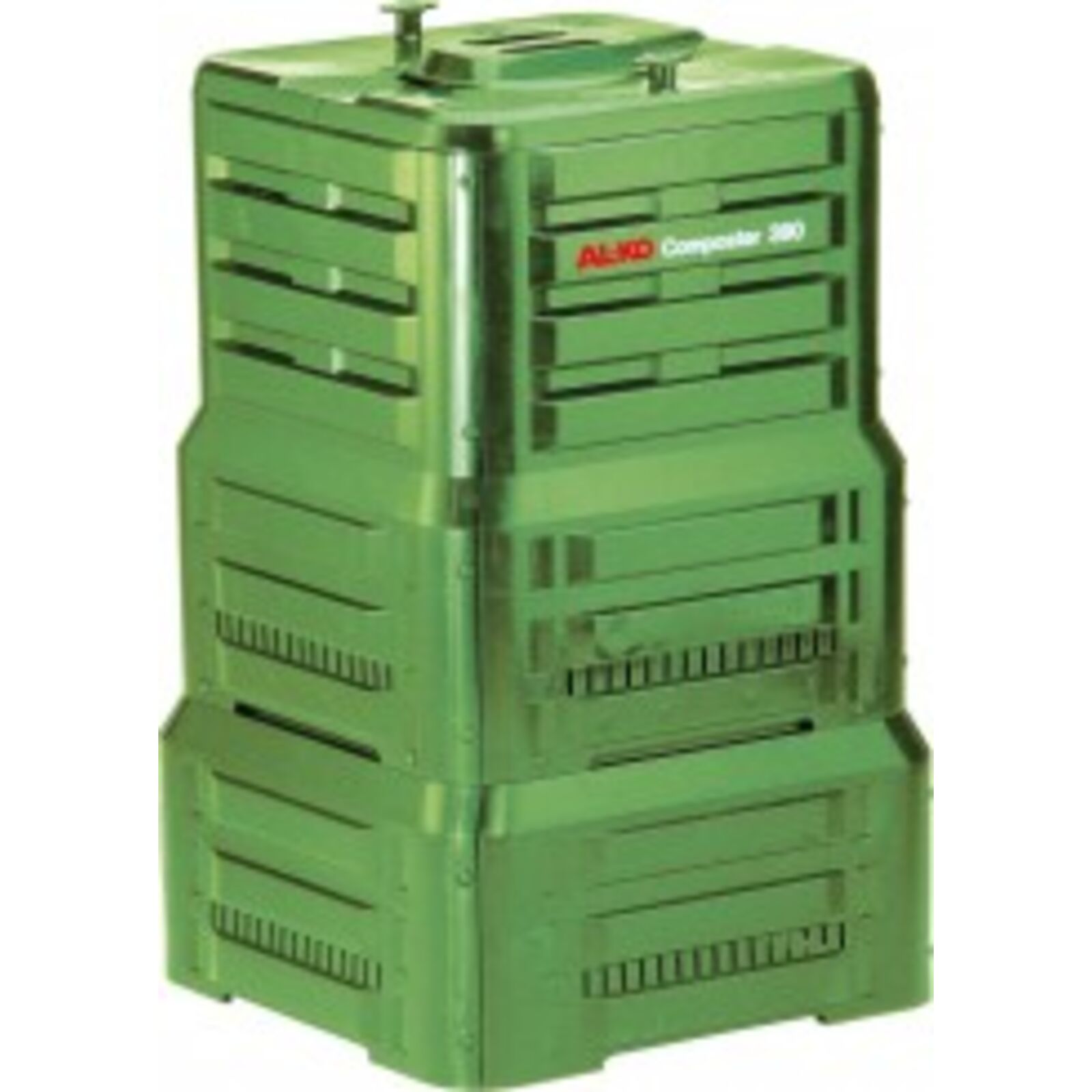 A komposztsíló újrahasznosított anyagból készült, 390 L űrtartalommal. A 13,2 kg súlyú komosztáló mérete: 660 x 660 x 1100 mm. Két töltőnyílással és egy eltávolítható fedéllel rendelkezik.
