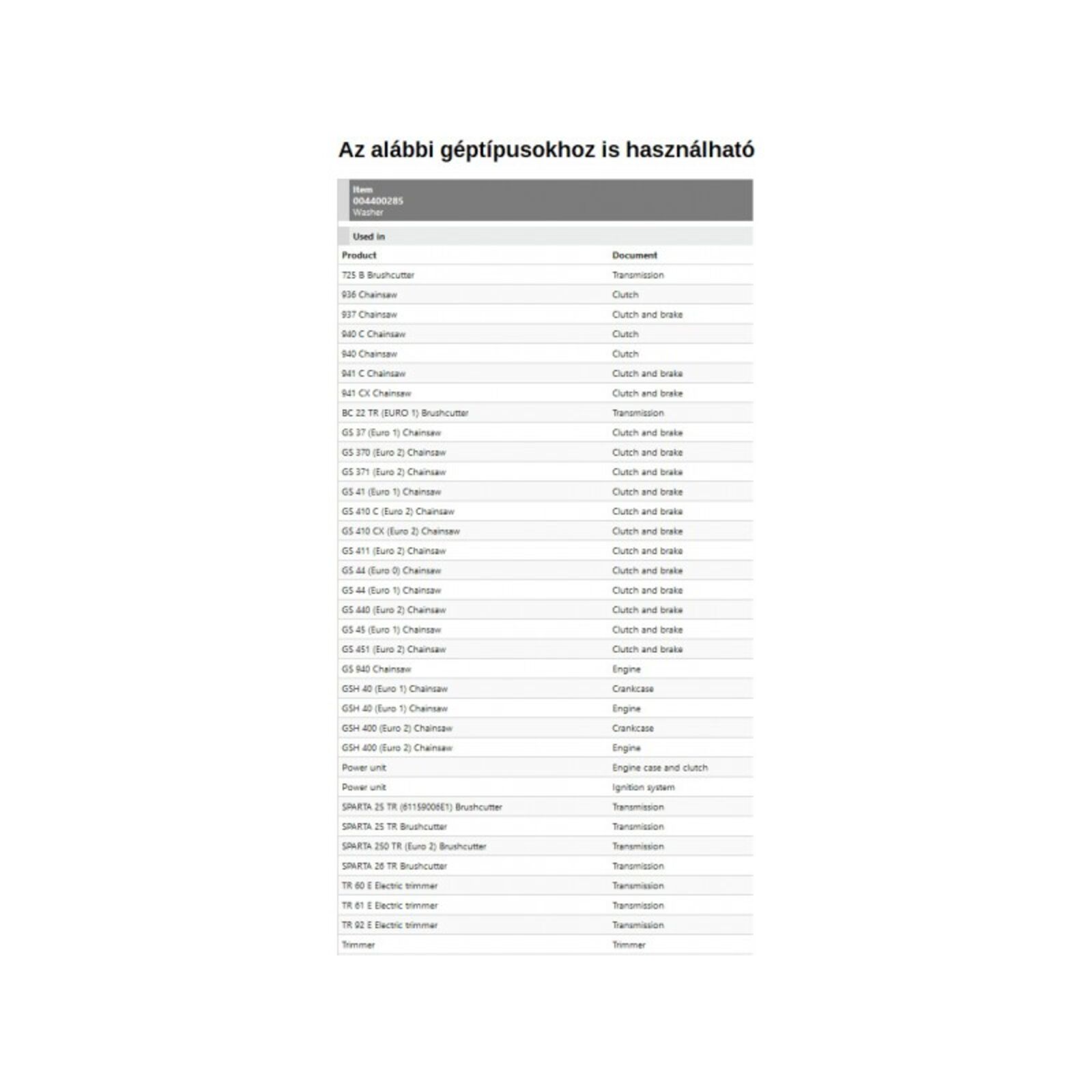 Alátét hézagoló 725 B, 936, 937, 940, 940 C, 941 C, 941 CX, GS 370, GS 371, GS 410 C, GS 410 CX