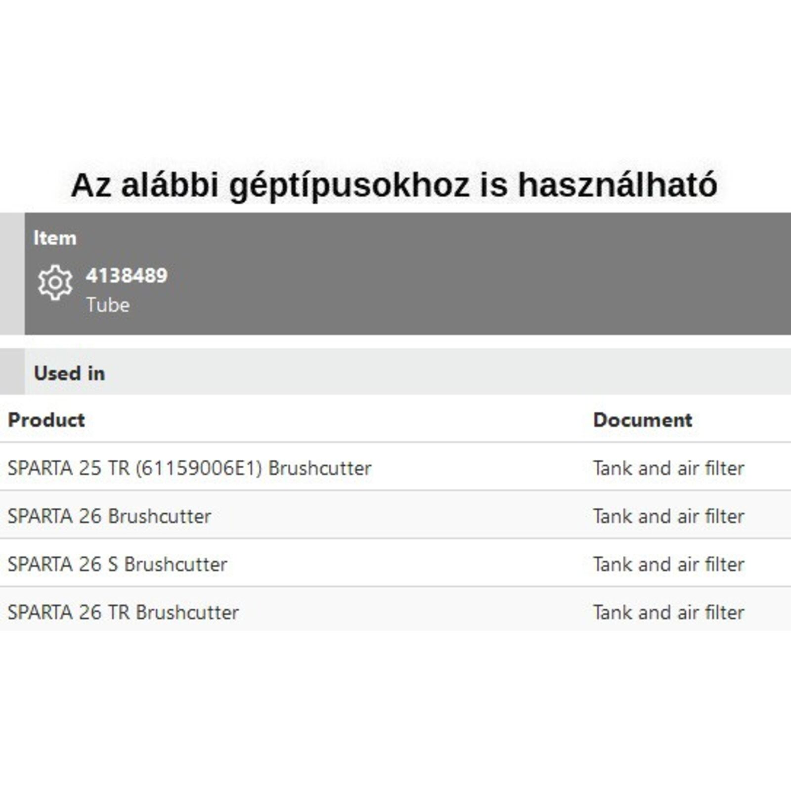 Benzincső fekete Sparta 25 TR, Sparta 26 - 26S - 26 TR