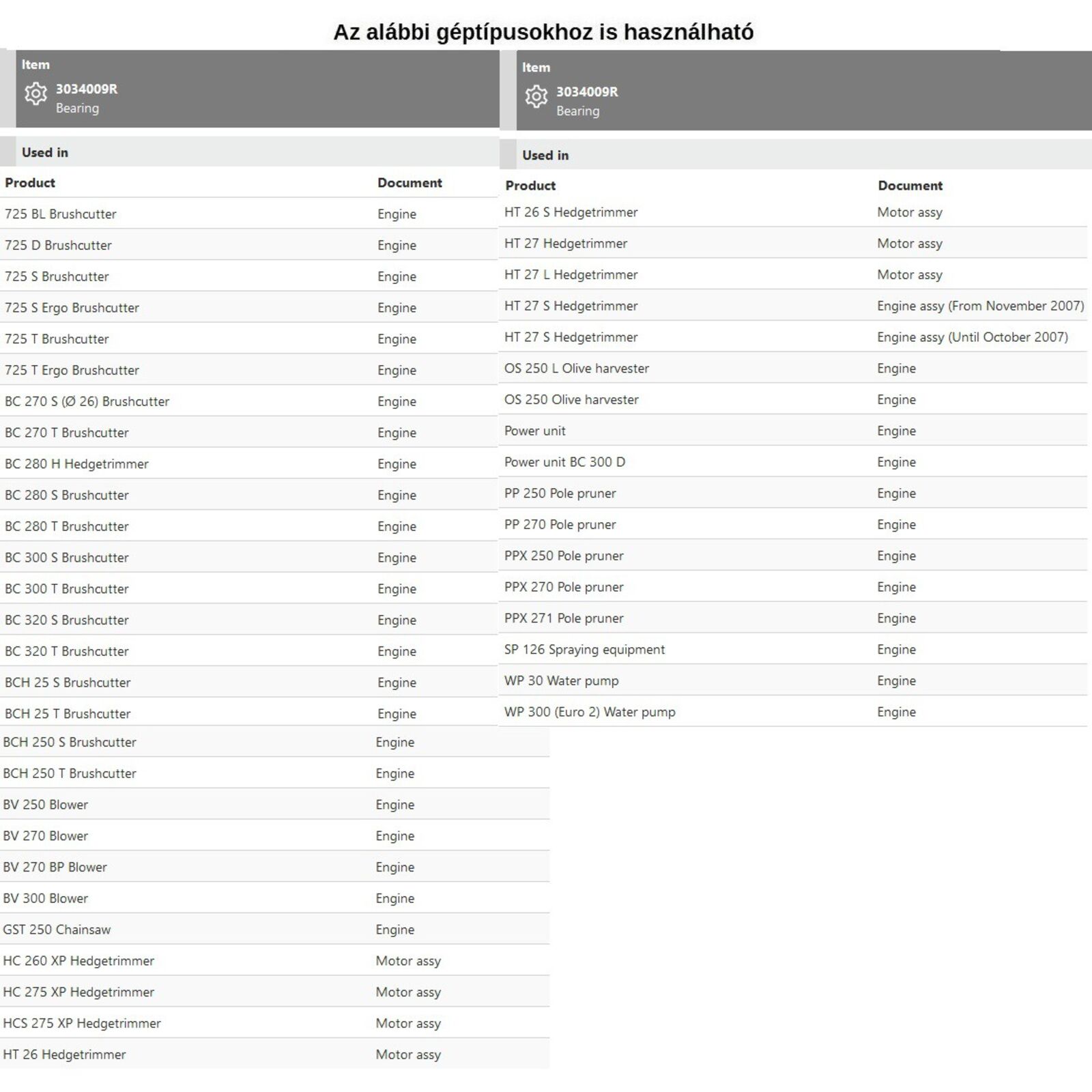 Tipusok: Multi-Mate motor / PPX 270 / BV 270 BP /BC 280 T /