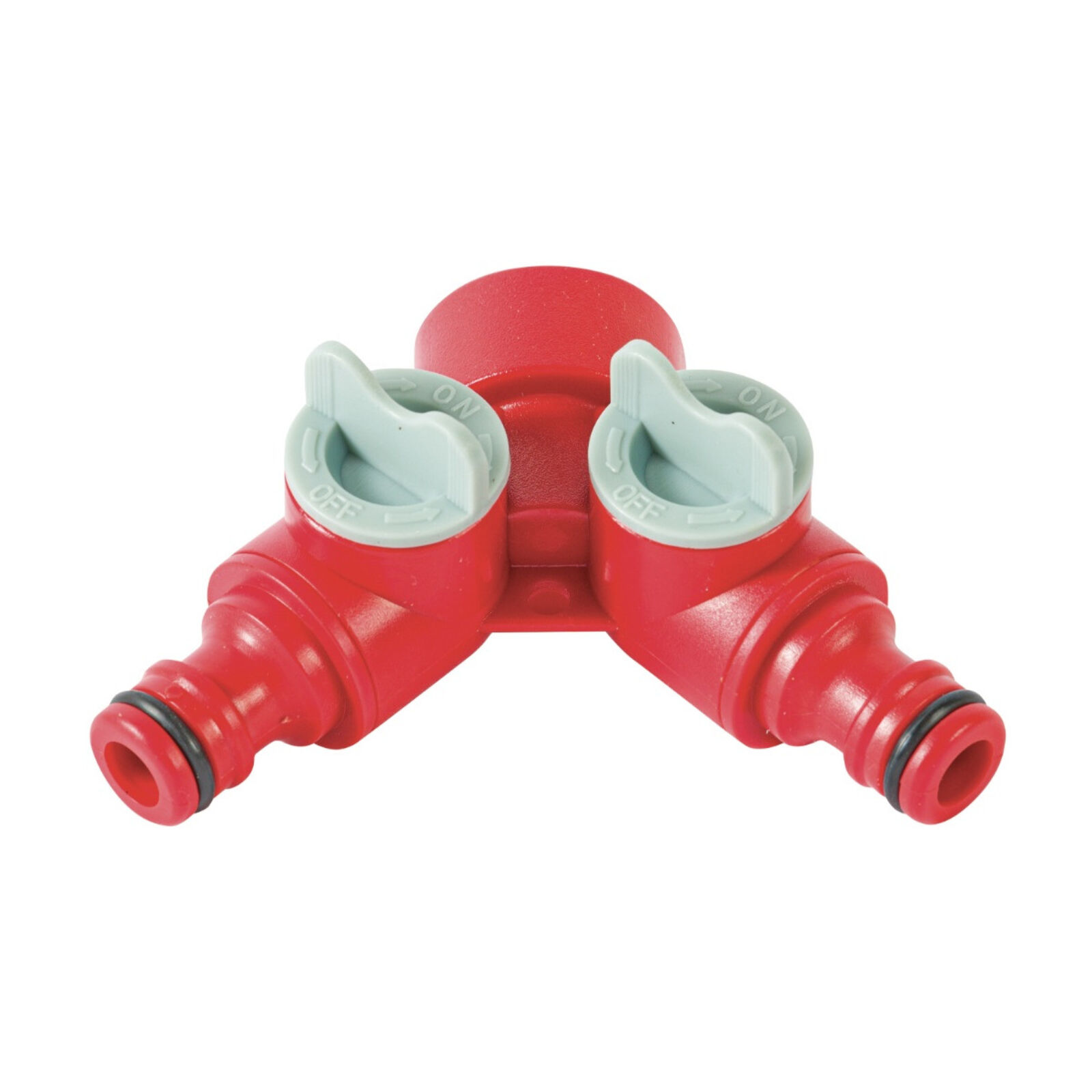 Y-elem 3/4" belsőmenettel két golyósszeppel szabályozható kimenettel kuplungos csatlakozással.