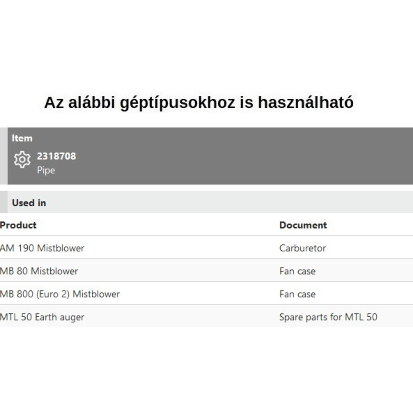 Csavar, állító csavar a pipához AM 190, MB 80, MB 800, MTL 50,