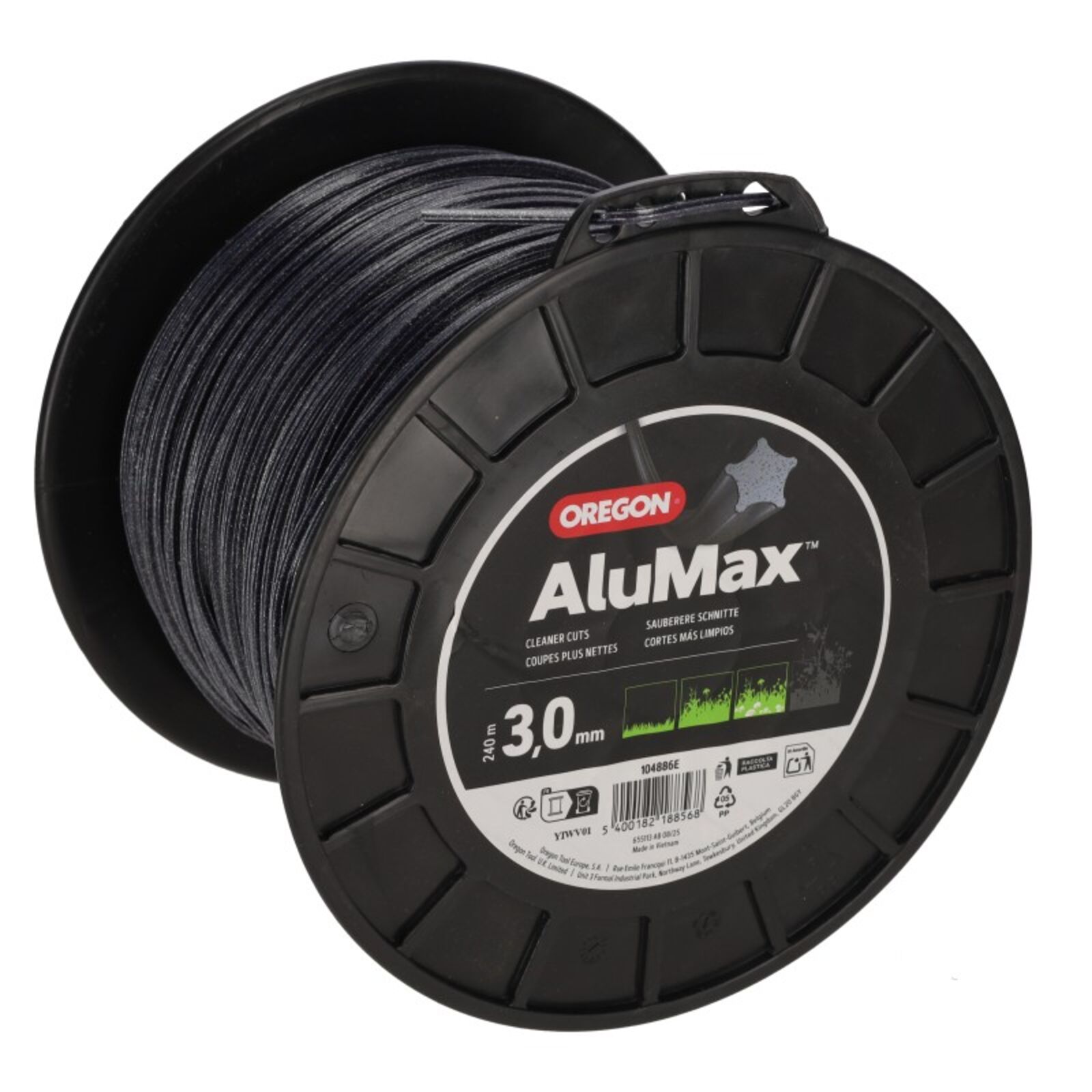Oregon gyártmányú Nylium típusú damil, 240 méteres, 3.0 mm átmérőjű, csillag profilú. Az anyagban lévő alumínium részecskék javítják a viselkedési tulajdonságokat. Magas törésállóság a vezetőszemnél, 5 éles vágóél a takaros végeredményért. 8 db/karton Átmérő:3.0mm Hossz:240m Profil:csillag (alumínium poros) Kiszerelés:dobon Szín:szürke Típusok: Oregon: Nylium,