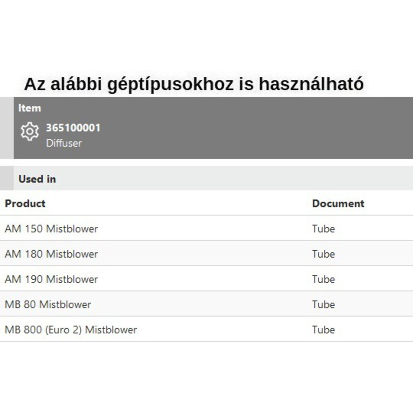 Diffuzor, tölcsér AM 150, AM 180, AM 190, MB 80, MB 800