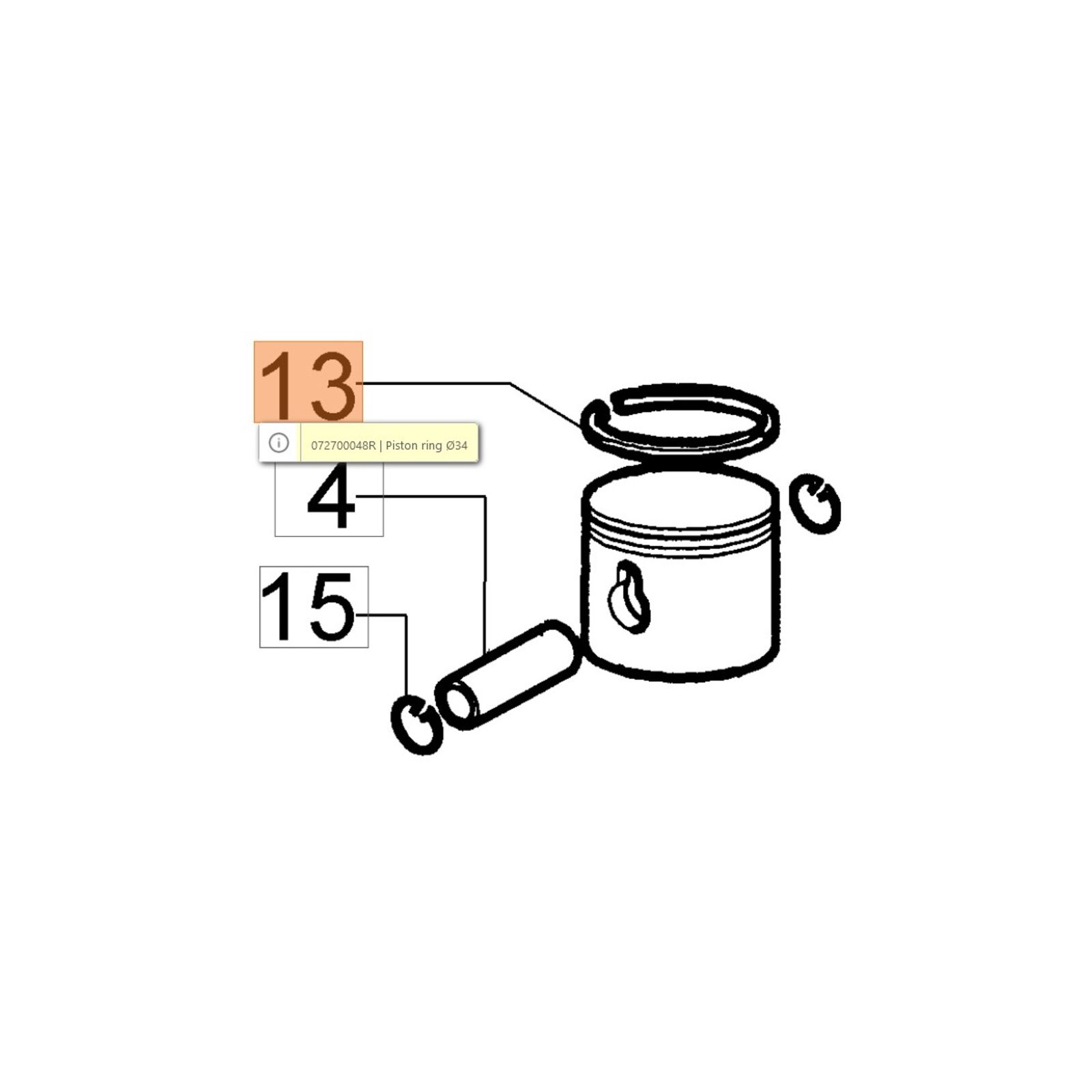 Dugattyú gyűrű 34 mm - Sparta25,26,250,Victus260 - 1 gyűrűs - oldalt stiftelt - csak kettesével