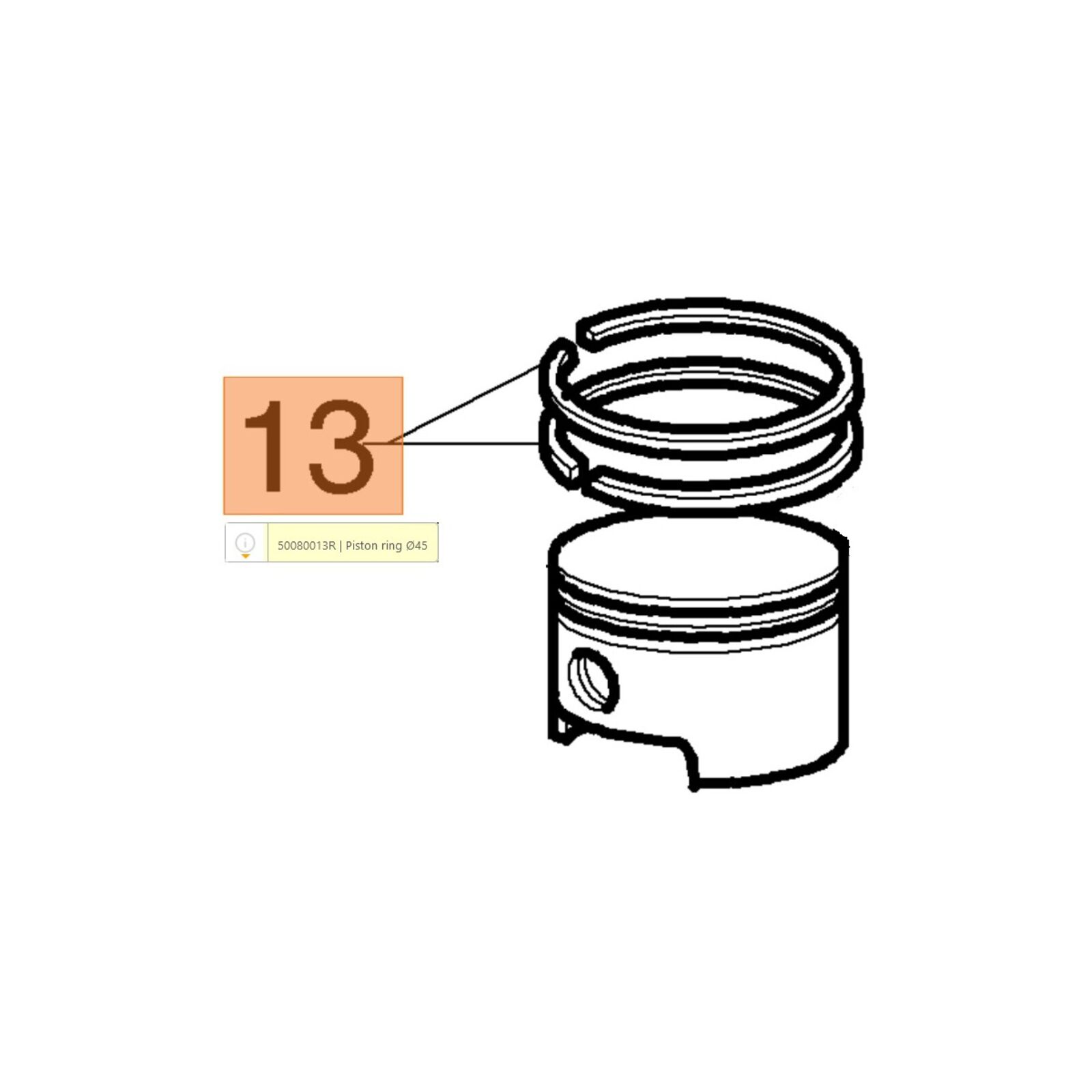 Dugattyú gyűrű 45 mm - 753, 755, BCH 500, GS 520 - 006000015 - oldalt stiftelt