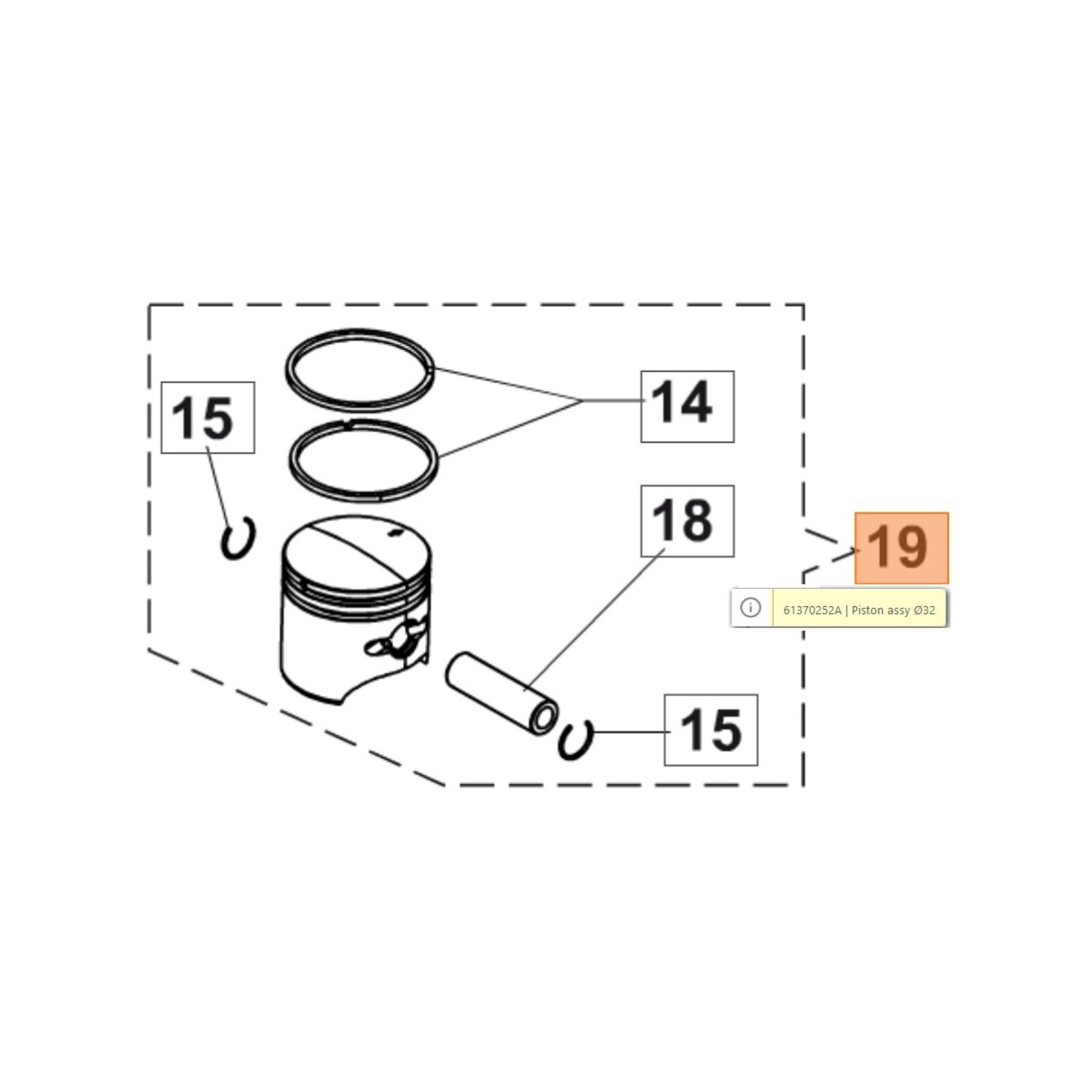 Dugattyú komplett 32 mm - BC22,220,24,240,HC265XP,HC280XP,BC280
