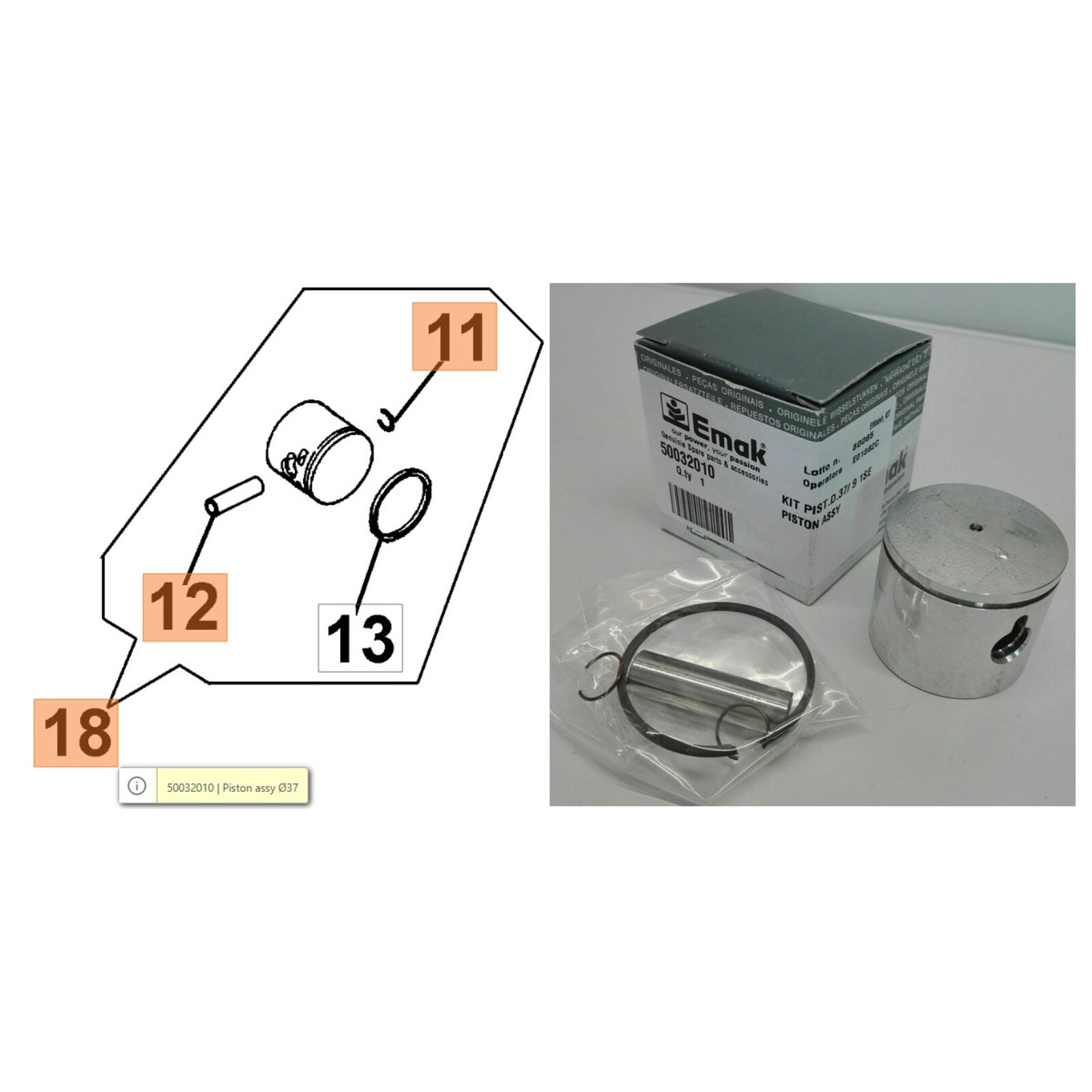 Dugattyú komplett 37 mm - 931,932