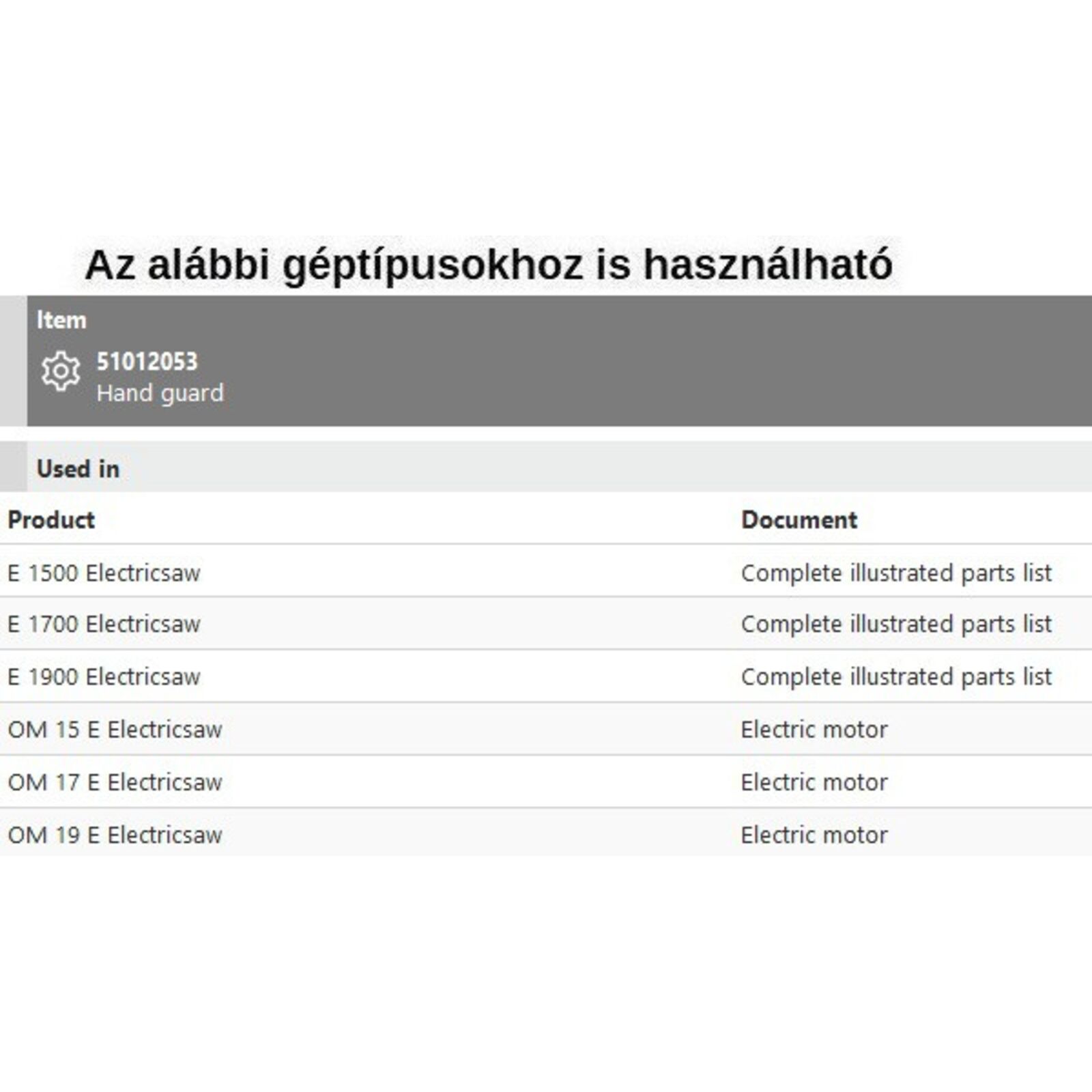 Fékkar láncfékkar E 1500,1700,1900, 15E,17E,19E - MEGSZŰNT