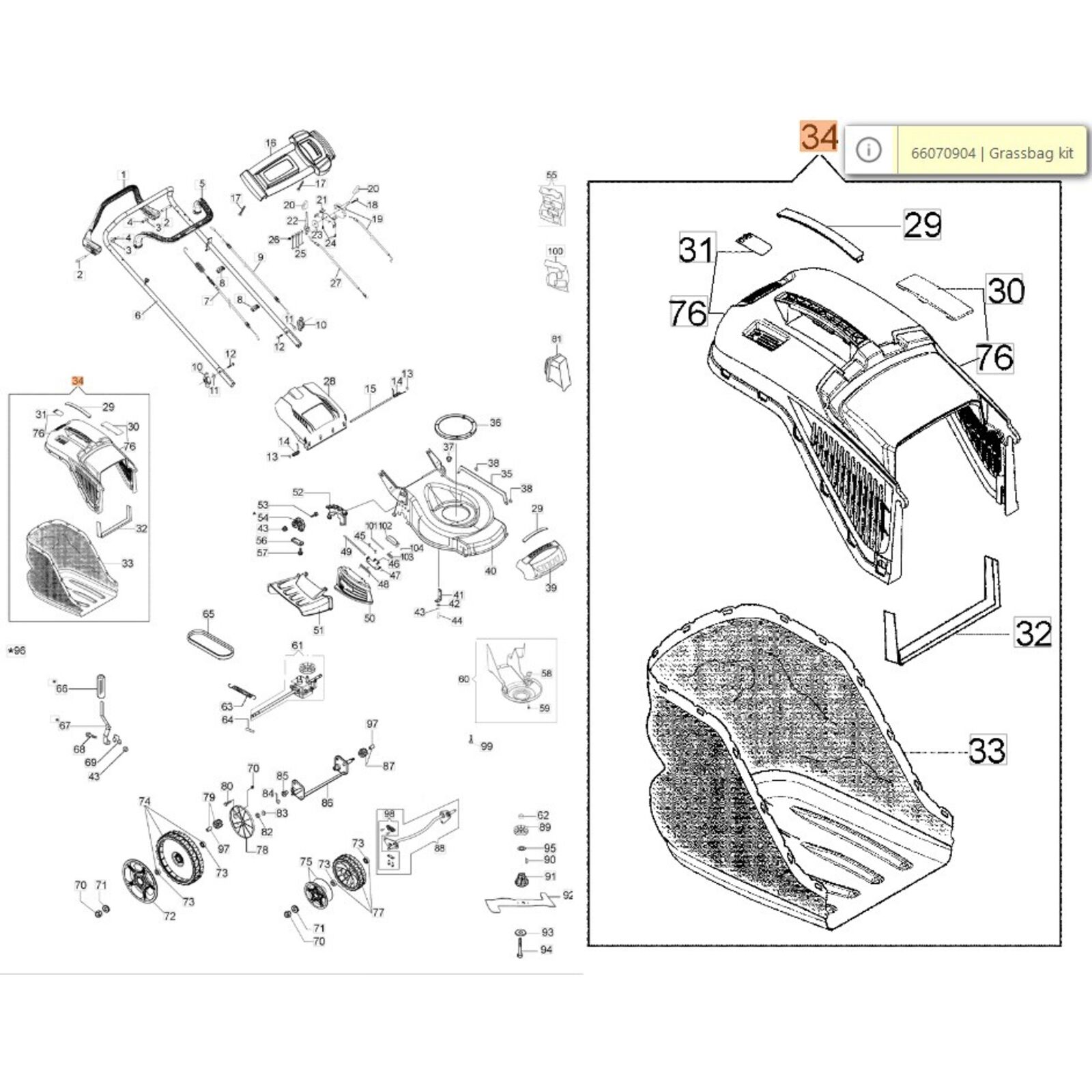Fűgyűjtő kosár - ÚJ - K 605, K 805 motorosokhoz - (66110839 - 50y) - 66070630