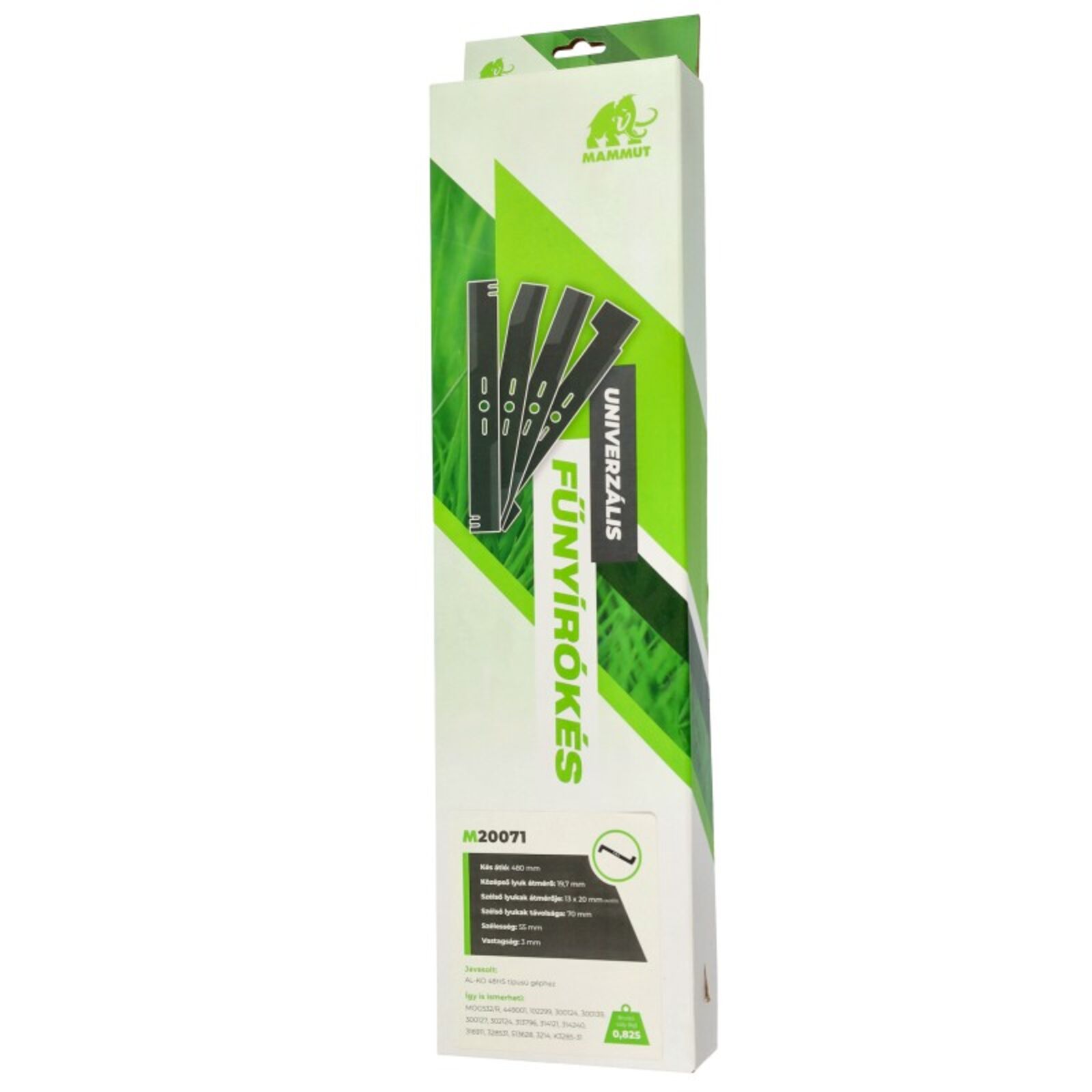 Fűnyíró kés MAMMUT AL-KO 48HS 475mm, 19.7mm, 3 furatos, utángyártott