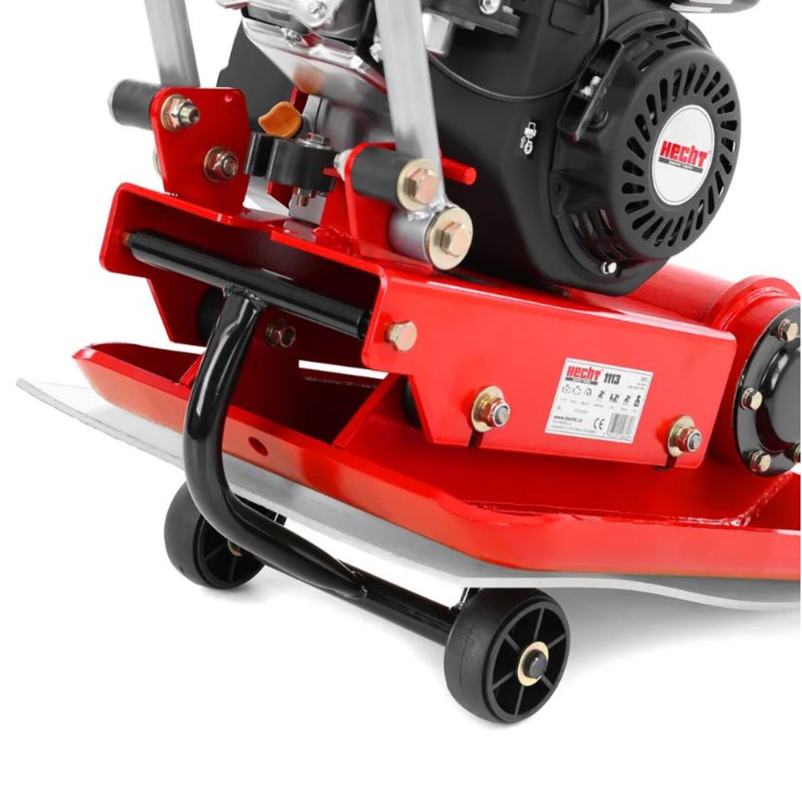 Hecht 1113 Lapvibrátor összecsukható kerekekkel és tartozék gumilappal. 4 ütemű benzinmotoros teljesítménye 5,5 LE.