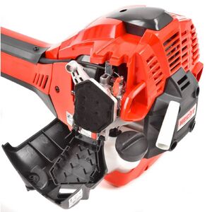 A gép 2,6 LE teljesítményű 2 ütemű benzinmotorral van felszerelve, Walbro márkás karburátorral, mely még sűrűbb növényzetet is megbízhatóan kezel. A kiváló minőségű kúpkerekes fogaskerekeknek köszönhetően az erő biztonságosan és megbízhatóan jut el a vágóasztalhoz. A vágási szélesség a használt szerszámtól függően 25,5 / 43 cm - a gép kiváló minőségű háromkarú fémtárcsával és kétszálas félautomata damilfejjel van felszerelve - ha a húr túl rövid, csak érintse meg a fonott húrfejet a talajon, és a húr automatikusan meghosszabbodik. Ezután a vágó automatikusan beállítja a kívánt hosszra. Így nem kell folyamatosan kézzel hosszabbítani a zsinórt fűnyírás közben.