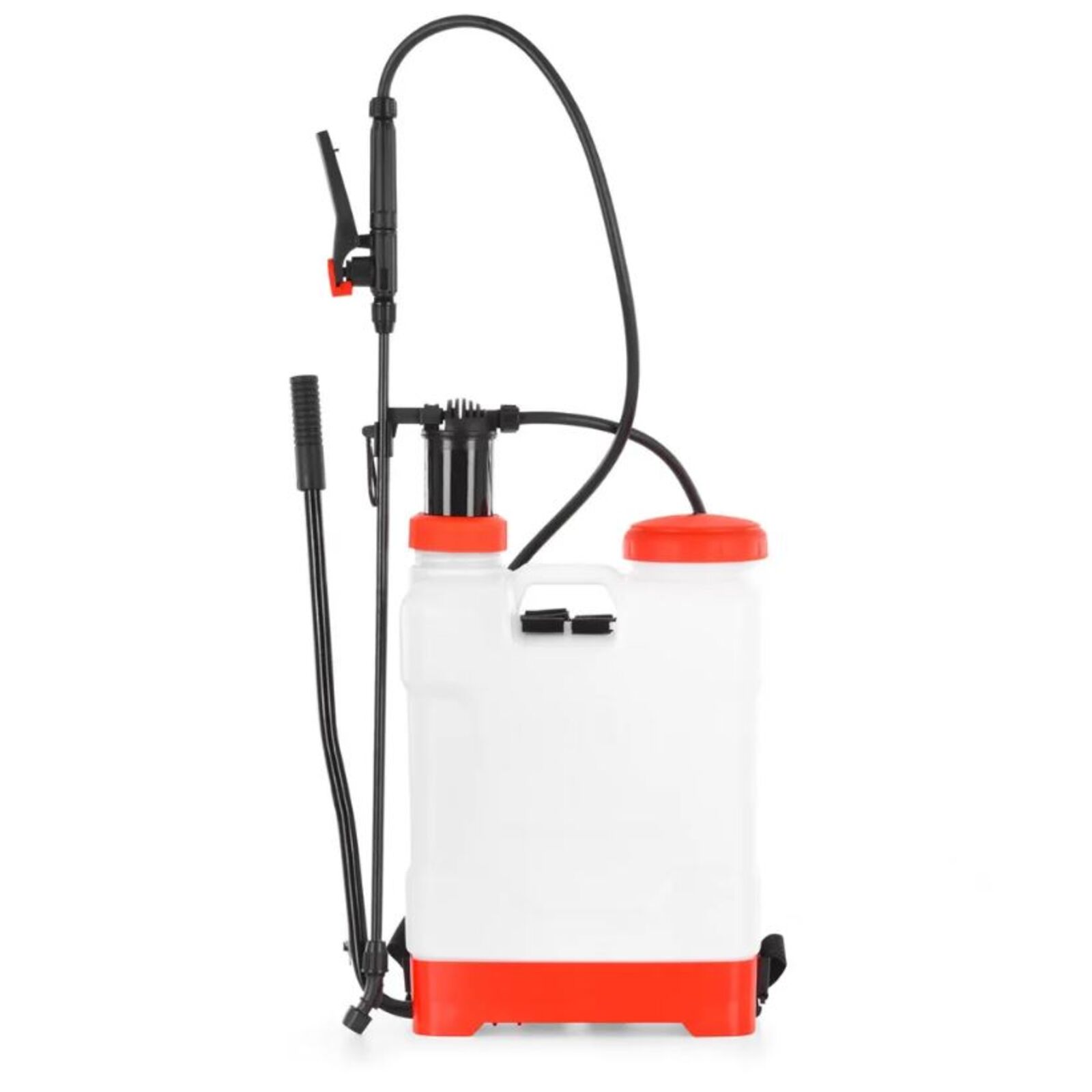 Nyomással működő, háti permetező 12 literes tartálykapacitással. A kar segítségével a kézi nyomás közvetlenül a háton fejthető ki. A maximális nyomás 4 bar. A pisztoly állítható fúvókával van felszerelve. A pisztoly és a fúvóka közötti cső hossza 50 cm, átmérője 10 mm. A cső cserélhető, így szükség esetén egy másik, például hosszabb csőre cserélhető (megvásárolható, nem tartozék).