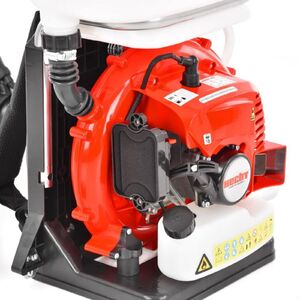 Benzinmotoros permetező 14 l-es tartály, akár 12 m hatótávolsággal. Teljesítmény 2,2 LE. Használható folyadék és granulátum szórására is.
