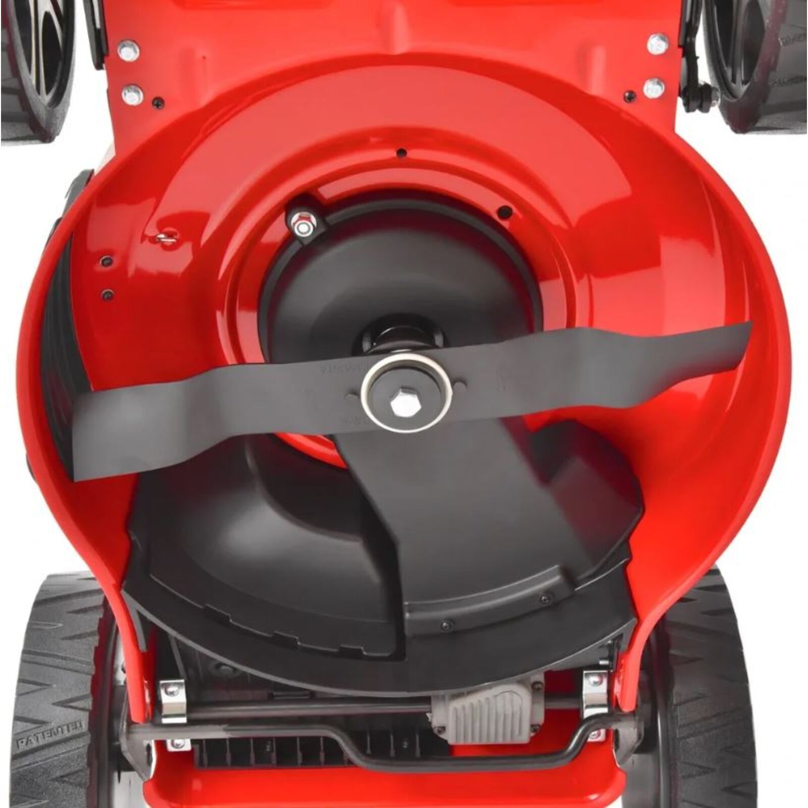 A fűnyíró alapját az erős acél váz alkotja, amiben 43 cm-es munkaszélességű kés forog. A kés a késtartóra központosító, elfordulásgátlóval van rögzítve, ami akadályba ütközéskor a kés elcsúszását okozza. A kés rögzítésének az a megoldása sok esetben megelőzheti a motor sérülését vagy a tengely elferdülését. A vágási magasságot 25-től 75 mm-ig lehet állítani, hét pozícióban.