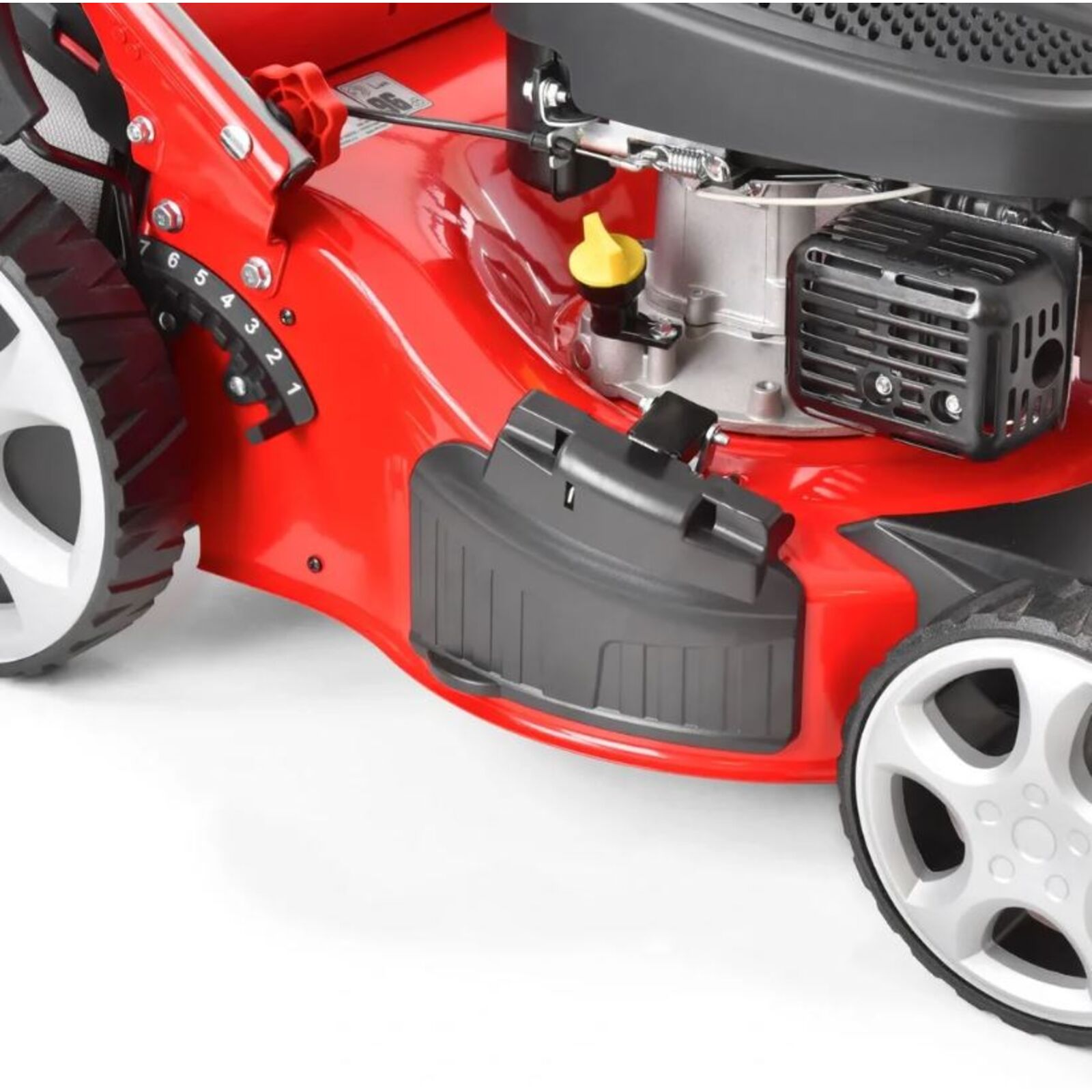 A fűnyíró tartozéka még az oldalkidobó burkolat és a mulcsozó ék. Elég levenni a gyűjtőkosarat, a hátsó kidobónyílásba beilleszteni a mulcsozó éket. és a speciális késeknek köszönhetően a fűnyíró készen áll a mulcsozásra. A mulcsozás folyamán a fű finom darabokra van összevágva, amelyek szabadon lehullanak a fű gyökeréhez. A finom összevágásnak köszönhetően megtartják a talajban a nedvességet és természetesen táplálják a talajt. Ha az ékkel együtt felteszi az oldalkidobó burkolatát is, a füvet az oldalkidobó használatával tudja vágni. Ez akkor előnyös, ha a levágott füvet nem szeretné összegyűjteni, és így a nagyra nőtt füvet is le tudja vágni.