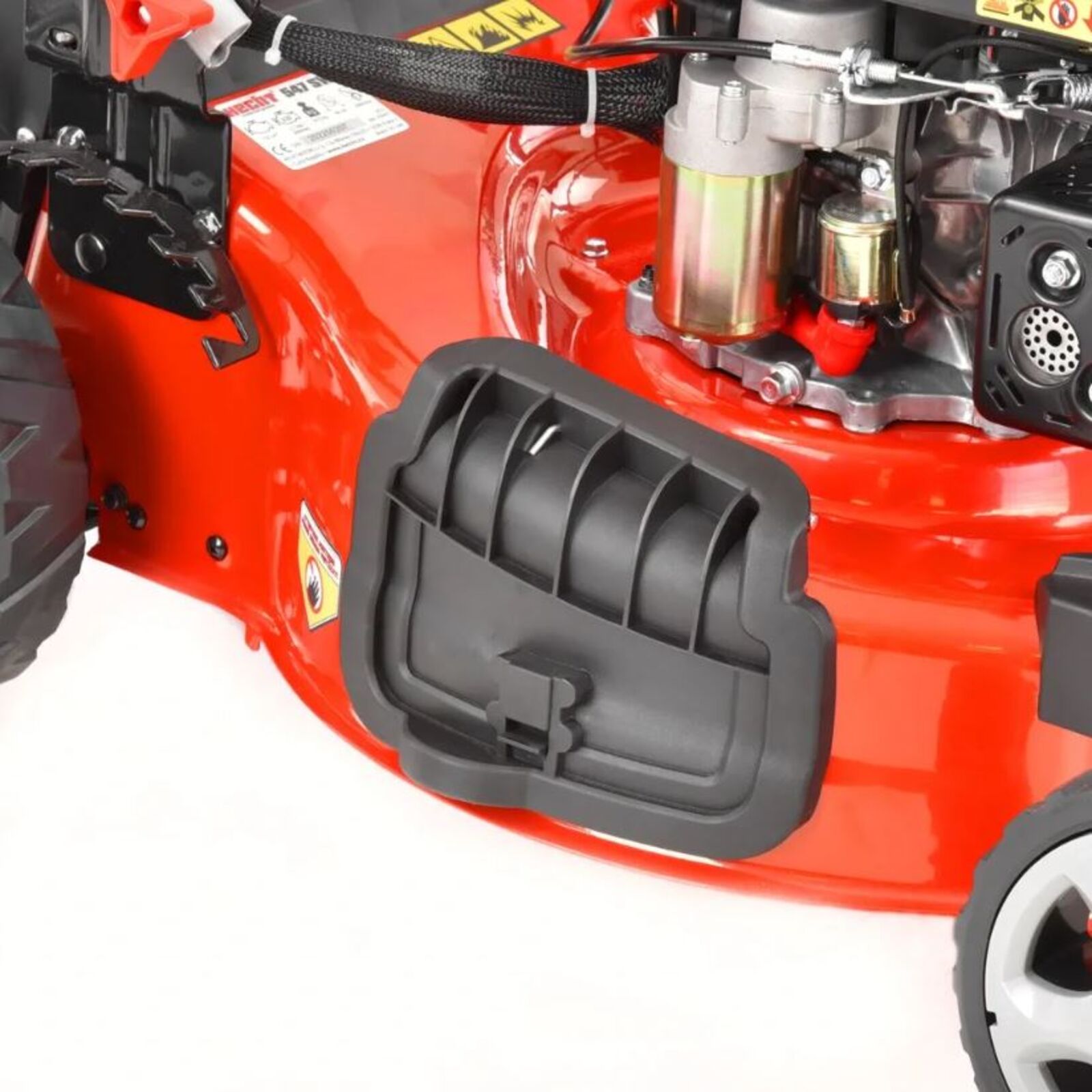 - A 7 hüvelykes első és 10 hüvelykes hátsó kerekek segítik a fűnyírást, ami kivételes ebben a kategóriában (golyóscsapágyakat tartalmaznak)