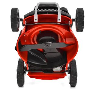 A váz alatt egy 46 cm-es kés forog, amely lehetővé teszi a fűnyírást és mulcsozást. A levágott fű normál üzemmódban az 55 l-es gyűjtőkosárba kerül.