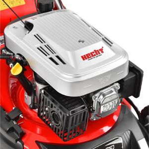 A meghajtásról a 135 cm3, 3,3 HP teljesítményű HECHT OHV motor gondoskodik. Ez a teljesítmény nemcsak a nyíráshoz elég, de az önjáró kerekek meghajtására is, a fűnyíró sebessége 3,6 km/h. Az erős fém házon oldalkidobó nyílás is található. Tartozék az oldalkidobó takarója, ami lehetővé teszi, hogy ne gyűjtőkosárba, hanem az oldalkidobó használatával nyírja a füvet. Ezt főleg a nagyobbra nőtt fű nyírásakor fogja értékelni, mert nem kell taposnia a levágott füvet, és a fűnyírót sem tömíti el. A független német folyóirat, a Heimwerker Praxis értékelése.