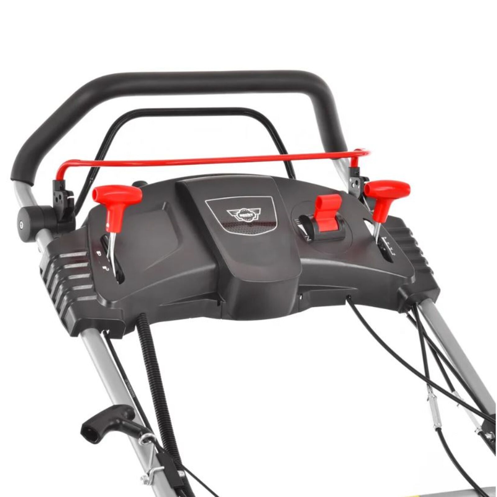 A fűnyíró beindítása történhet az elektromos indítóval, vagy a klasszikus berántóval is. Az elektromos indítás a fogantyún található indítógomb lenyomásával történik. Az indítást 12 V-os akkumulátor segíti, ami a fogantyú paneljében található. Így mindig jól hozzá lehet férni, és a fűnyíró tartozéka az akkumulátor töltő is, amit közvetlenül a fogantyún található, így az akkumulátort úgy lehet tölteni, hogy nem szükséges kivenni a fűnyíróból. A fűnyírót természetesen klasszikus berántással is be lehet indítani.
