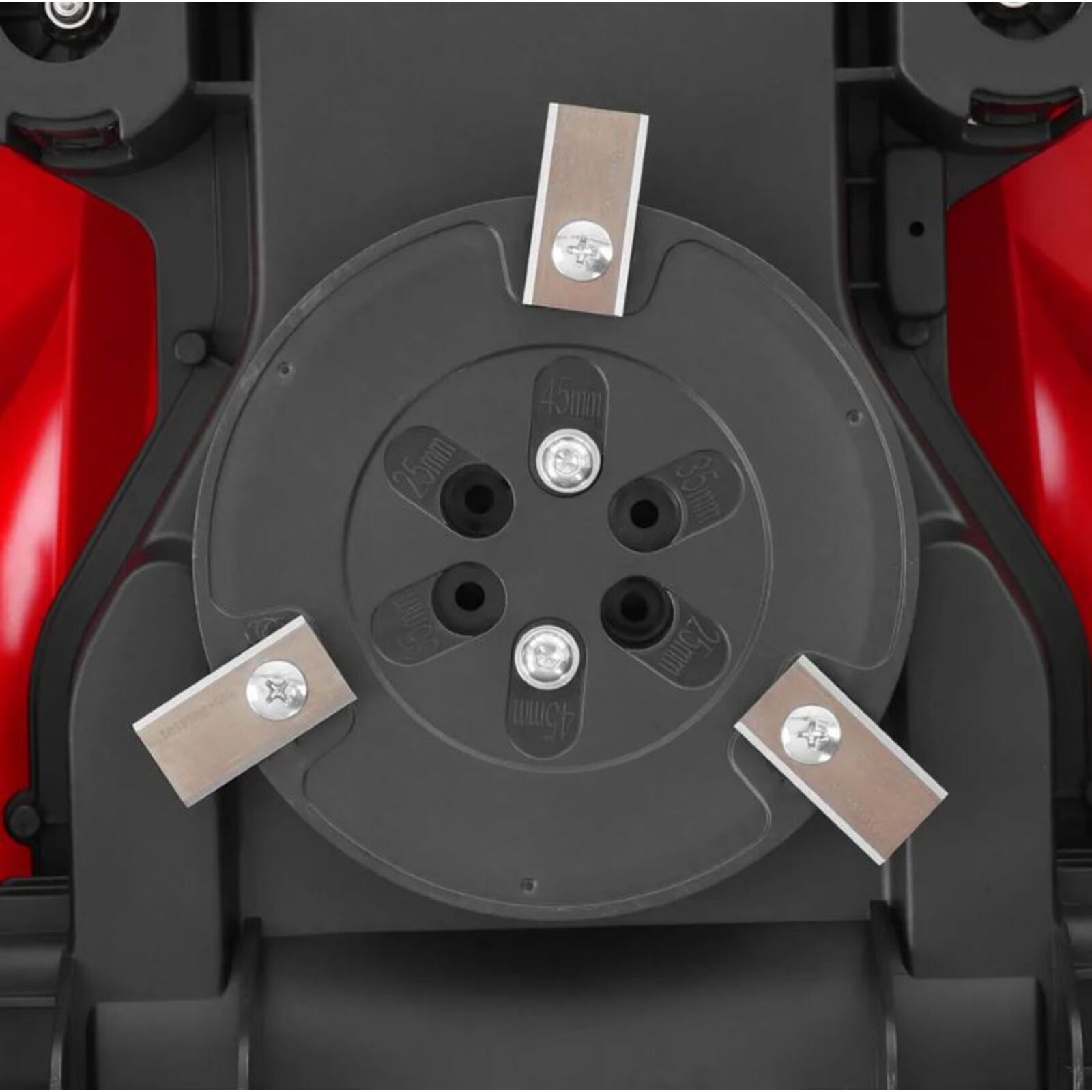 A fűnyírót PIN-kód védi a lopás ellen. PIN-kód ismerete nélkül a fűnyíró nem indítható el, így a tolvajok használhatatlanná teszik. A fűnyíró alatt teljesen elrejtve található egy forgófej három pengével, ami veszélyes lehet, ha a fűnyírót felemelik vagy felborul. Ezért a gép érzékelőkkel van felszerelve, amelyek biztosítják, hogy a pengék azonnal leálljanak, amikor a fűnyírót felemelik. Egyéb előre nem látható helyzetekre a fűnyíró egy nagy gombbal van felszerelve a felső burkolaton, amellyel szintén bármikor azonnal leállítható. A vágási magasság 25 és 45 mm között állítható.