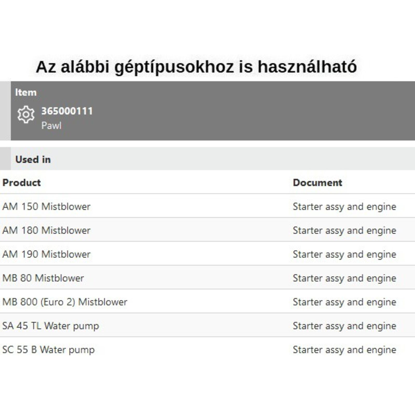 Tipusok: AM 150, AM 180, AM 190, MB 80, MB 800, SA 45 TL, SC 55 B