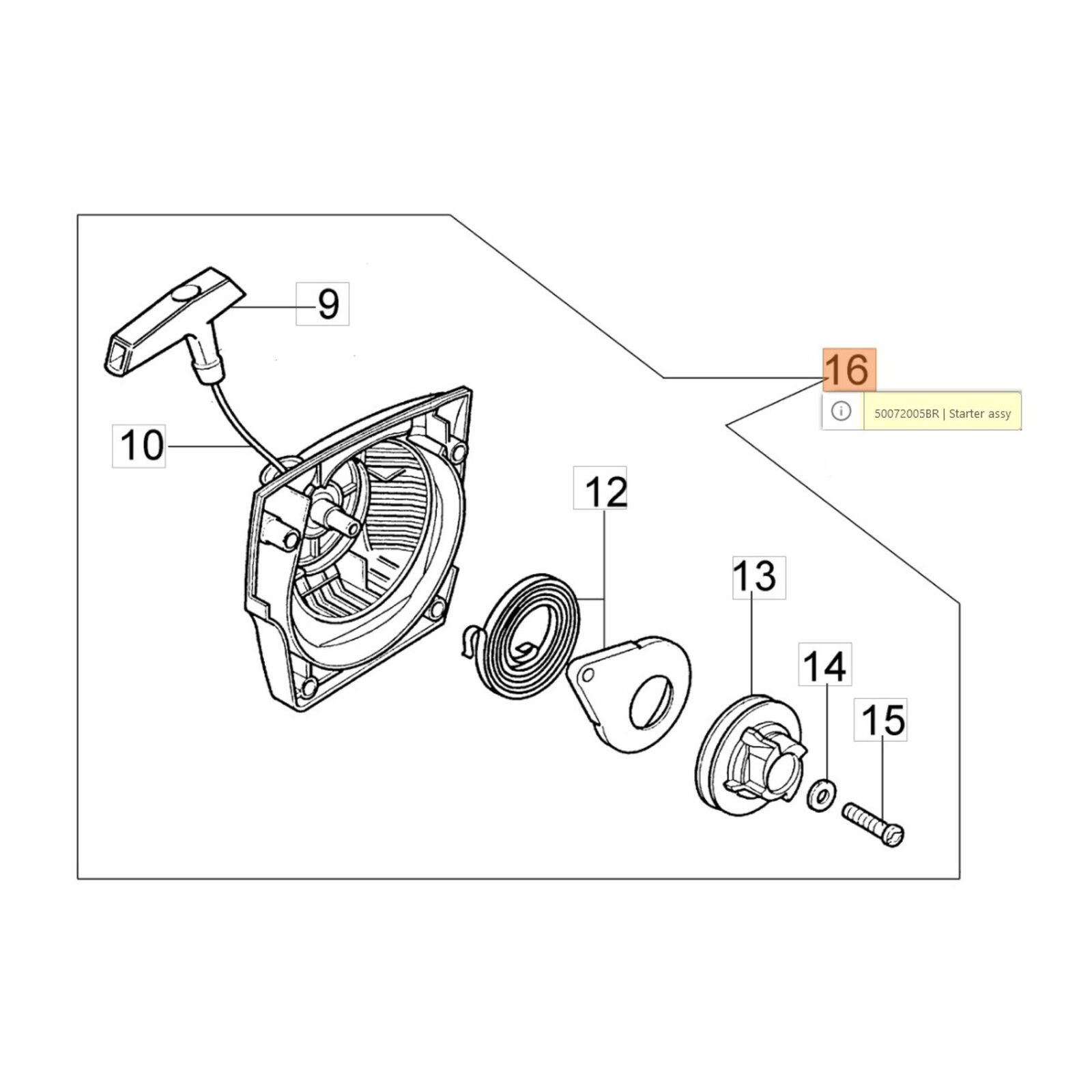 Komplett indító. Berántó+fedél+kötéltrácsa+rugó. OLEO MAC 947,952 láncfűrészekhez.