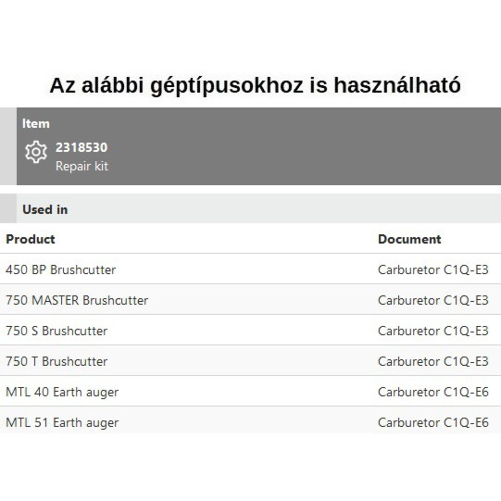 Karburátor javító készlet 750, MTL 40, 51