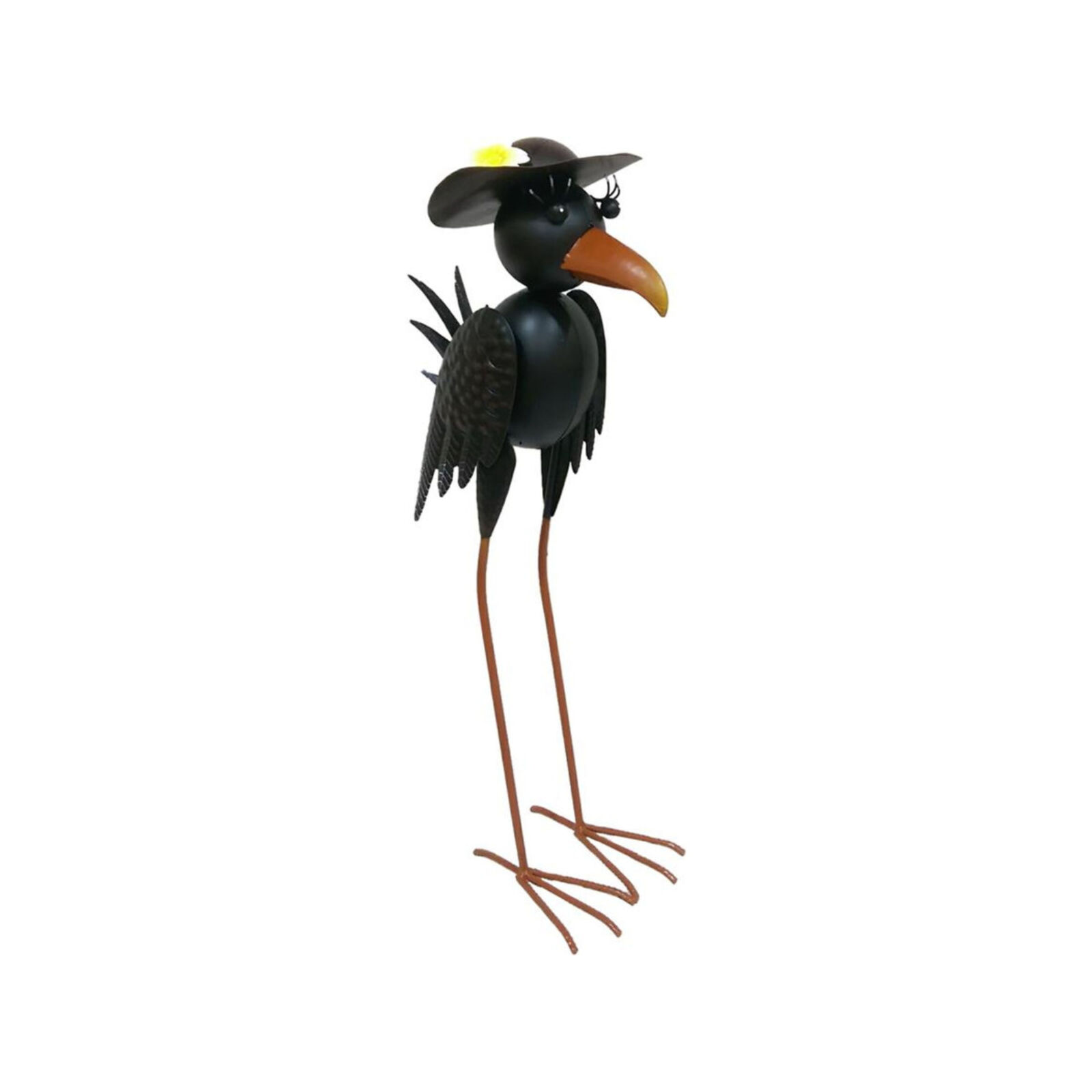 A dekoratívMAGICHOME varjústílusos és szellemes kiegészítője a belső térnek vagy a kertnek. A24,5 × 15,5 × 61,5 cmméreteiveljátékos és elegáns elemkénttűnik ki, amely személyiséget kölcsönöz a térnek. Atartós fémbőlkészült varjú kidolgozott részletekkel rendelkezik, köztüktextúrált tollakkal, narancssárga csőrrel és hosszú, karcsú lábakkal. Egyedi megjelenését egyelegáns kalap egészíti ki sárga virággal és finom szempillákkal, ami szelíd és játékos jelleget kölcsönöz neki. Ez a dekoráció ideáliskertben, teraszon vagy beltérbenvaló elhelyezésre, miközbenstabil és időjárásálló.