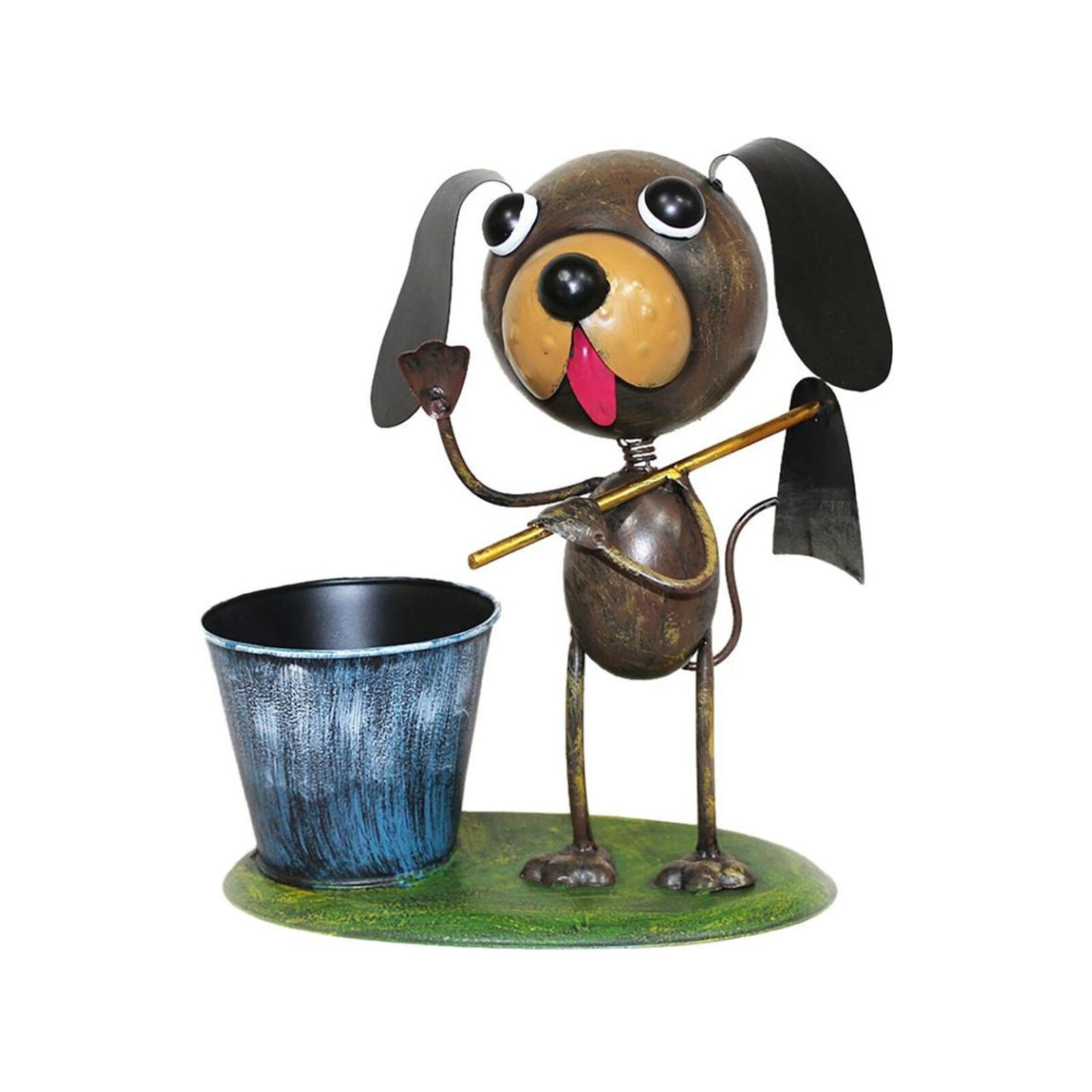 A dekoratívKutya kapával MAGICHOMEaranyos és vicces kiegészítője a kertnek, a terasznak vagy a belső térnek. Méretei27 × 16 × 29 cm, játékos kialakításával és vidám dizájnjával nyűgöz le. Atartós fémlemezbőlkészült kutya részletes figurájanagy szemekkel, hosszú fülekkel és lógó nyelvvelrendelkezik, ami imádnivaló és barátságos megjelenést kölcsönöz neki. Egyik mancsában egymáléttart, ami kiemeli a kertészkedés témáját. A dekoráció egy stabilzöld fűutánzattalellátottalapzaton áll, és egy kék színűfű ültetőedényttartalmaz, amely ideális kisebb növények, gyógynövények vagy dekorációs elemek elhelyezésére.
