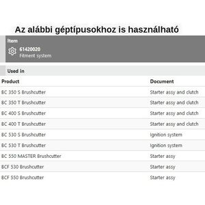 Kuplung csavar szett BC 350, BC 400, BC 530, BC 550