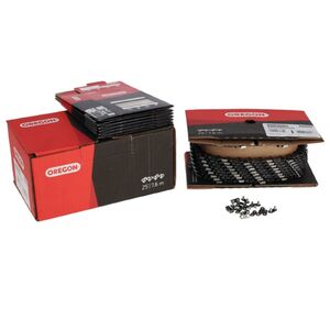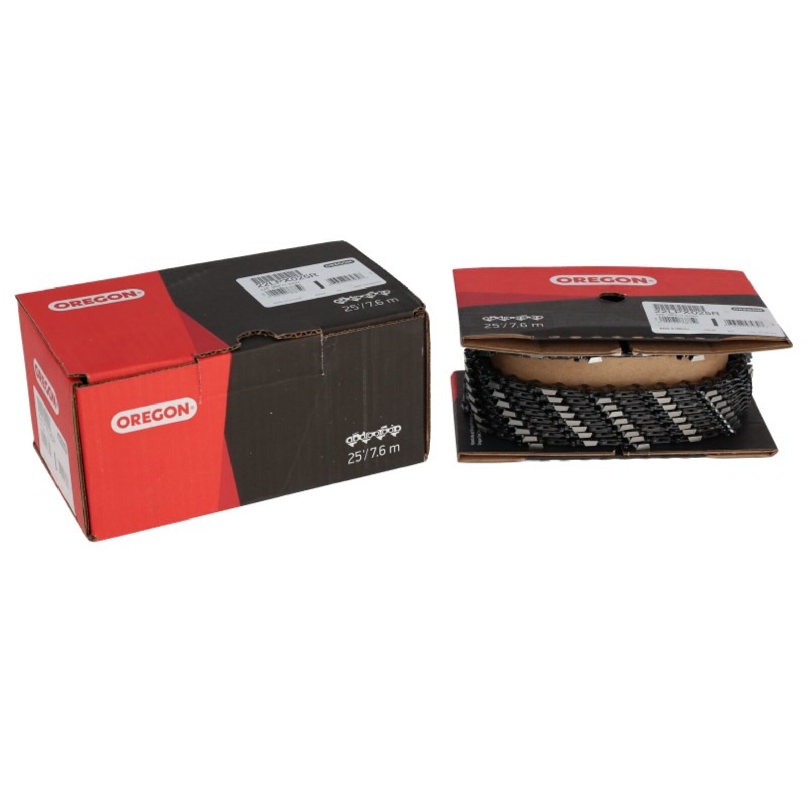 Oregon gyártmányú fűrészlánc, 25 lábas tekercsben.