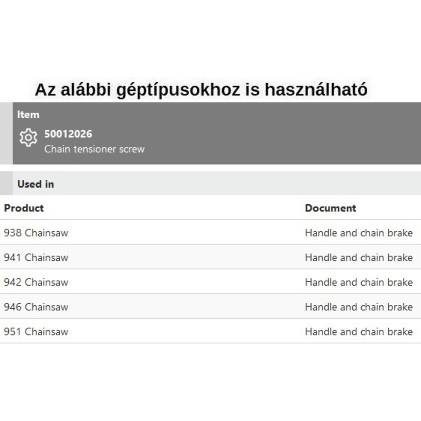 Láncfeszítő komplett 938, 941, 942, 946, 951