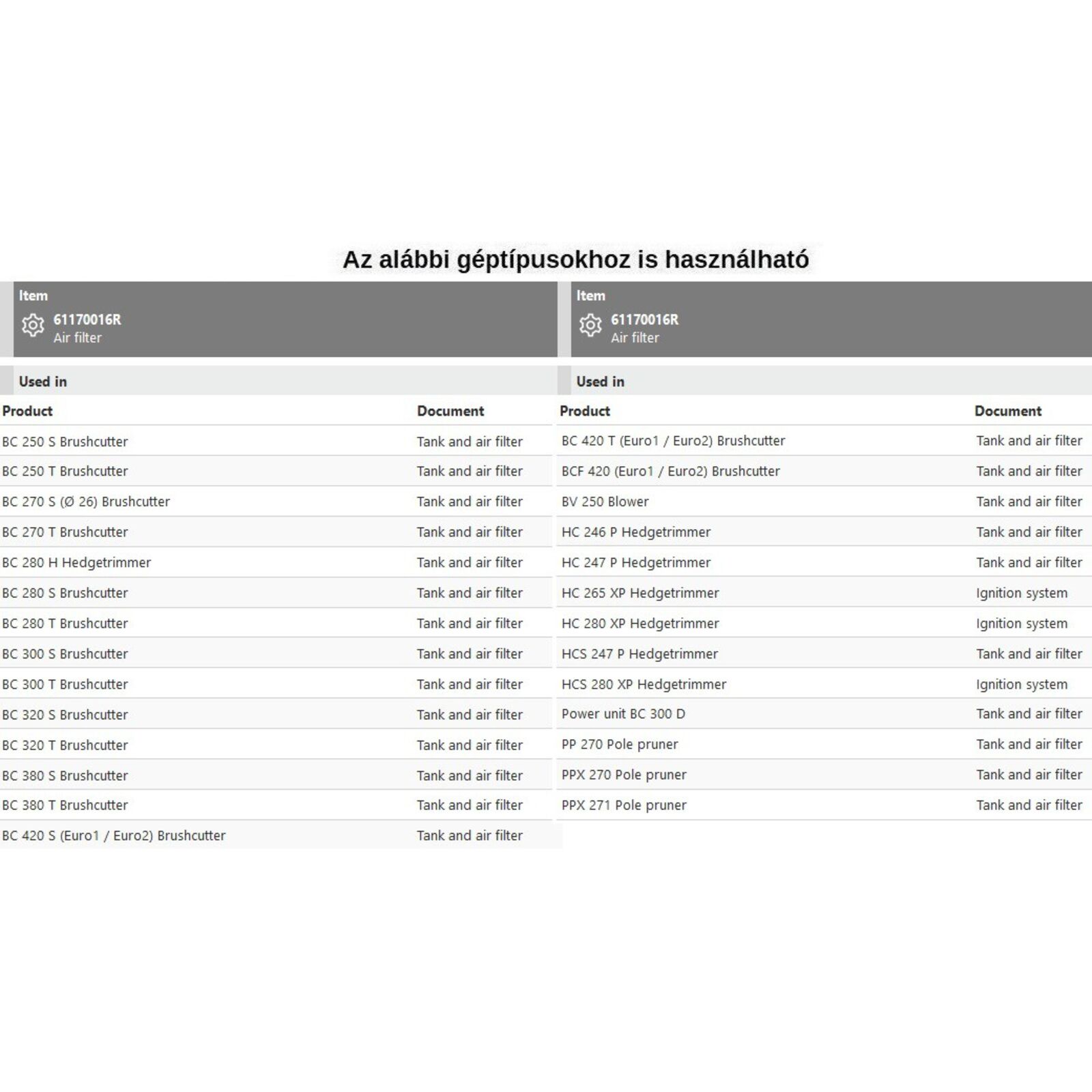 Légszűrő levegőszűrő betét papírharmónikás - BC280,BC320,BC380,BC420,BV250,HC246P,HC247P,PPX270