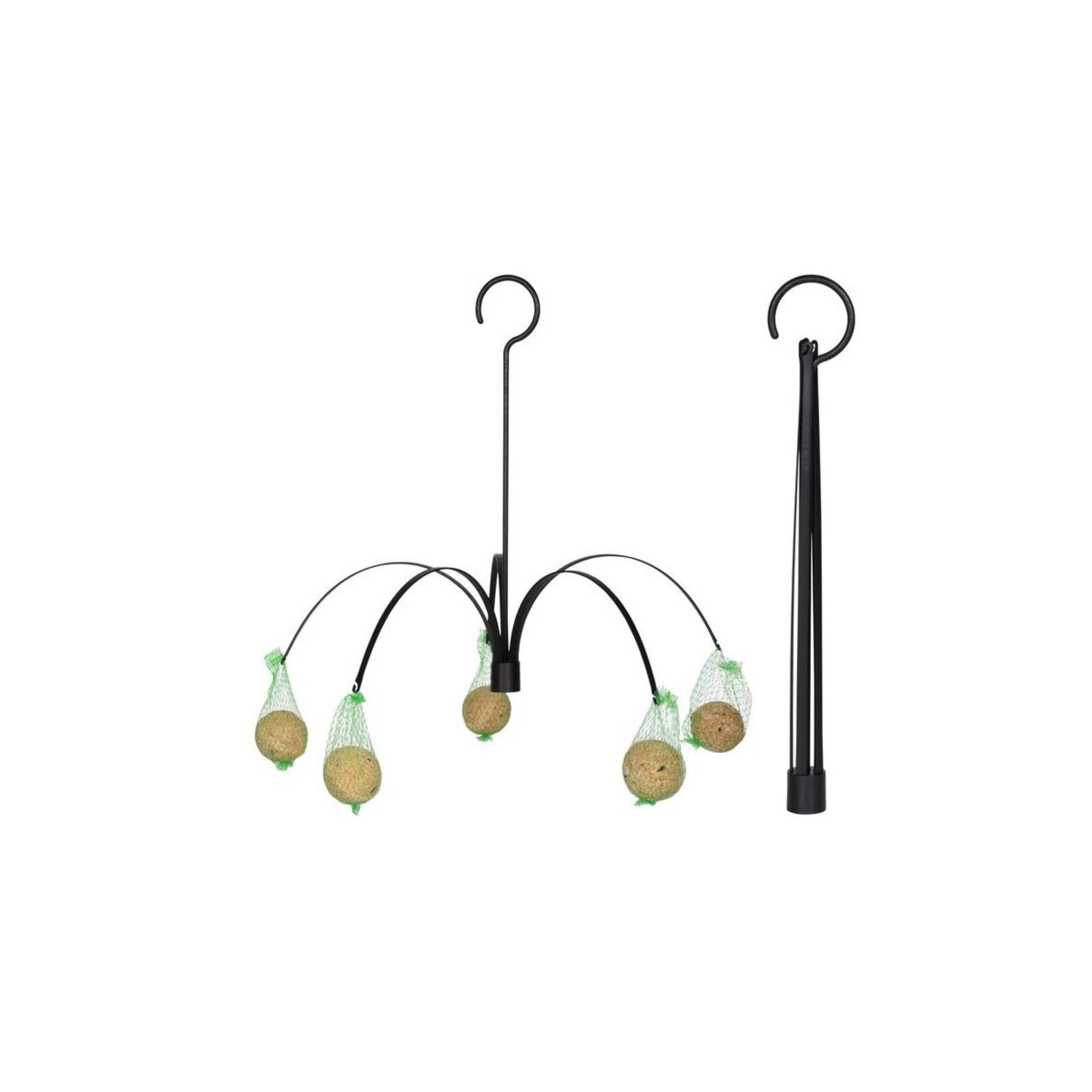 Felakasztható madáretető faggyúgolyókhoz. Az etetőt széthajtva, a kampókra akasztott eleségekkel használhatjuk. Mérete: magasság: 40,8 cm, szélesség: 6,6 cm, mélység: 3,1 cm (össszecsukva)