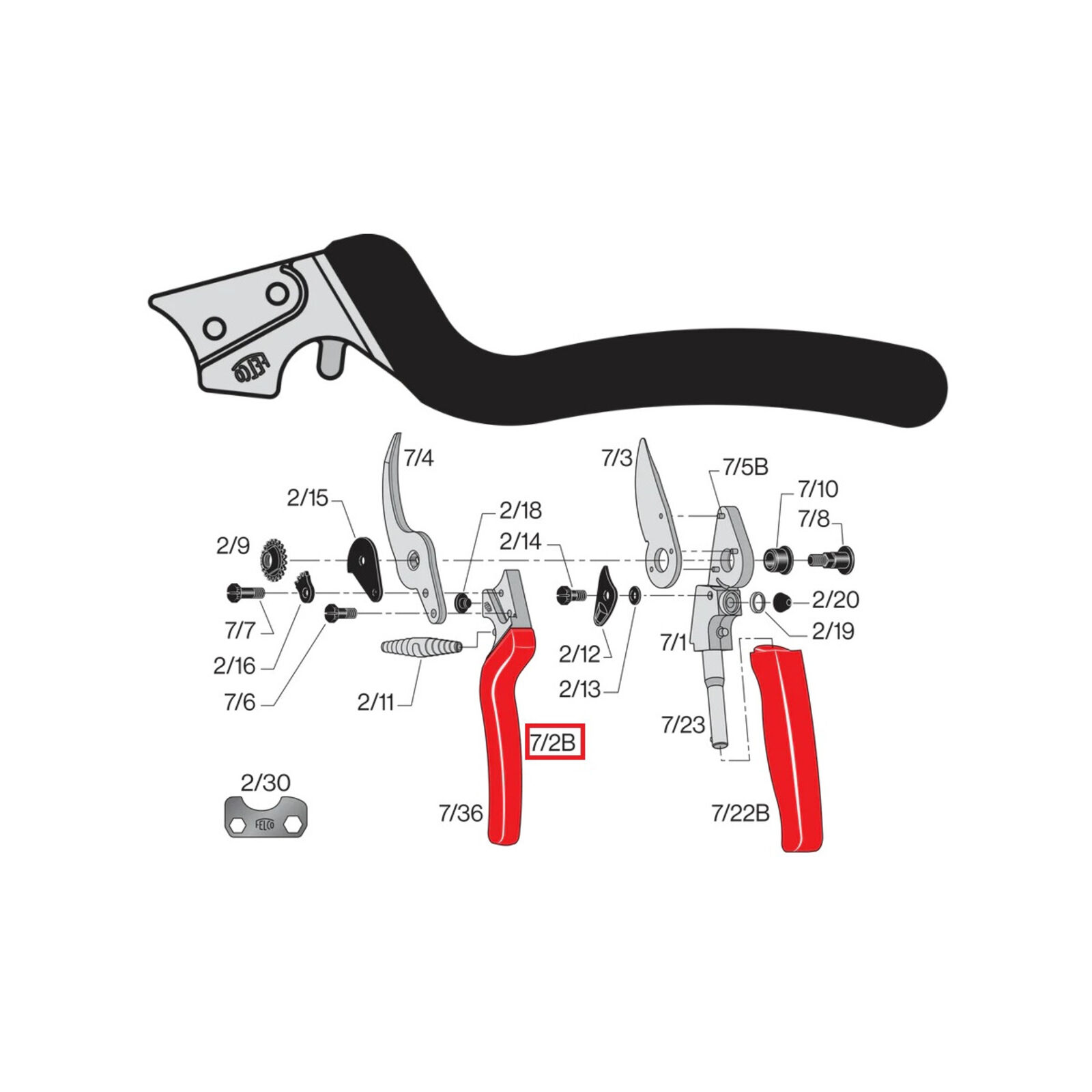 Nyél komplett ellenpenge nélkül - FELCO 7 - 7/2B
