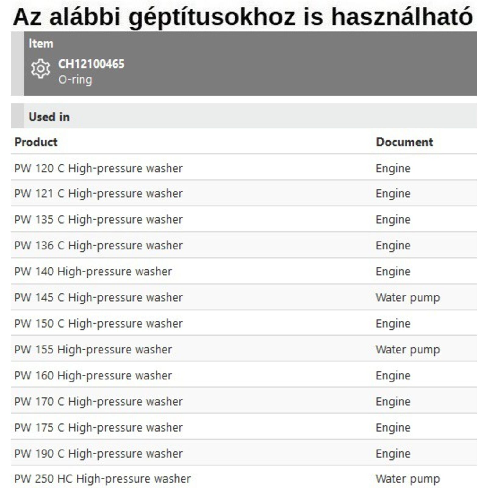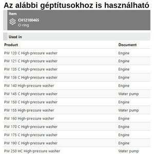 O-gyűrű PW 120C-121C-135C-136C-140-145C-150C-155-160-170C-175C-190C