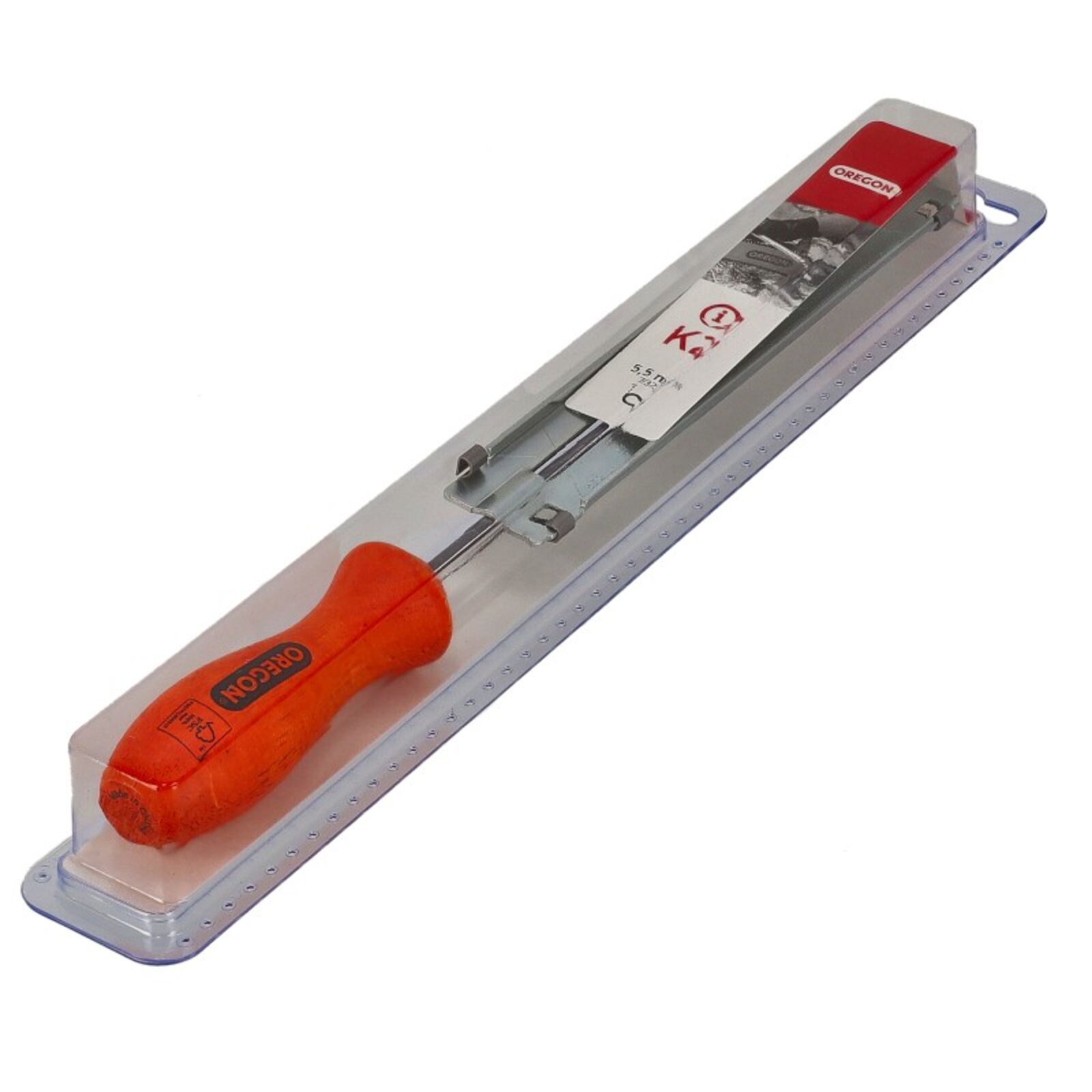 Kényelmes, könnyen használható precíz, Oregon reszelősablon, 5.5 mm-es reszelővel, 3/8" és 404" láncok karbantartásához.