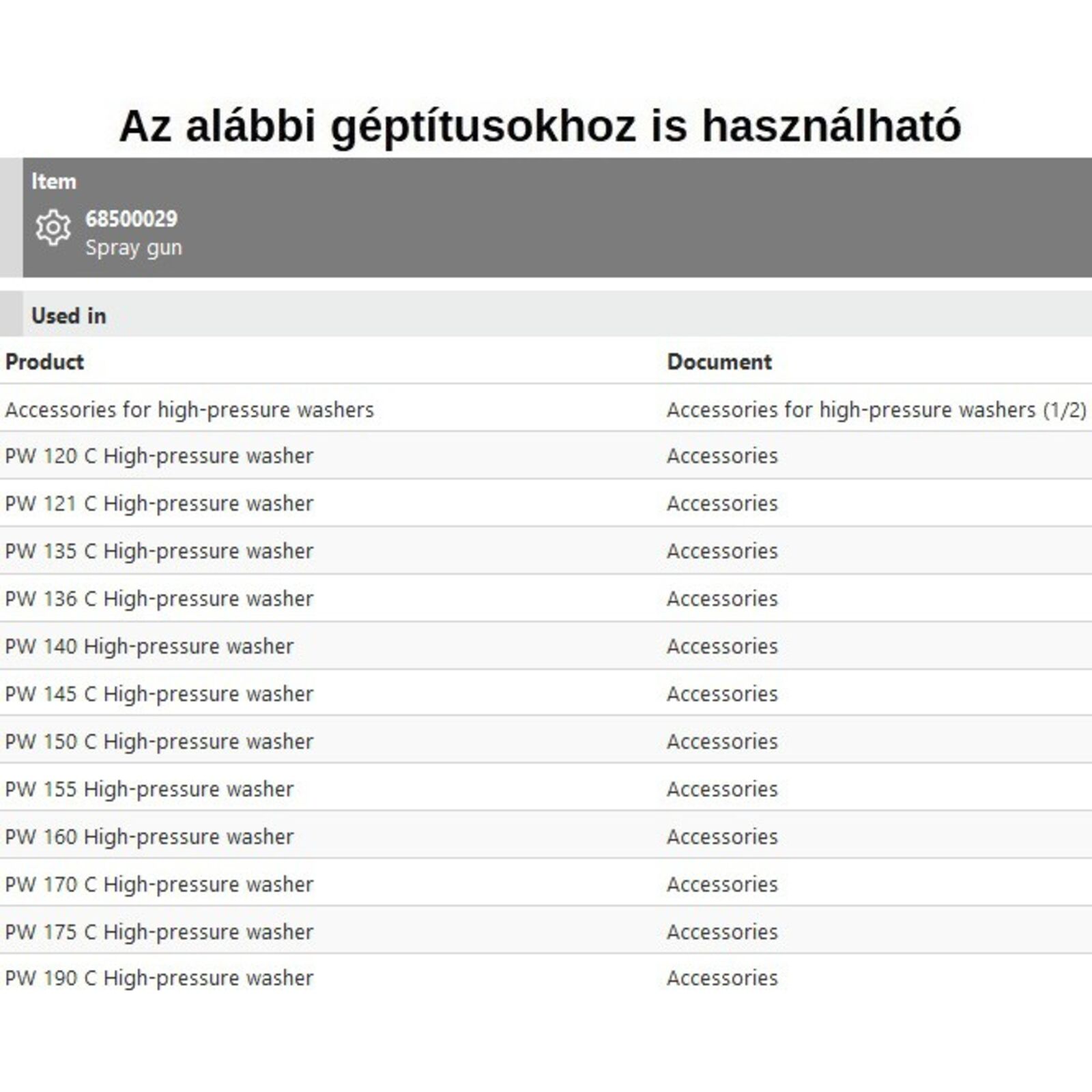 Pisztoly mosóhoz PW 120-121-135-136-140-145-150-155-160-170-175-190