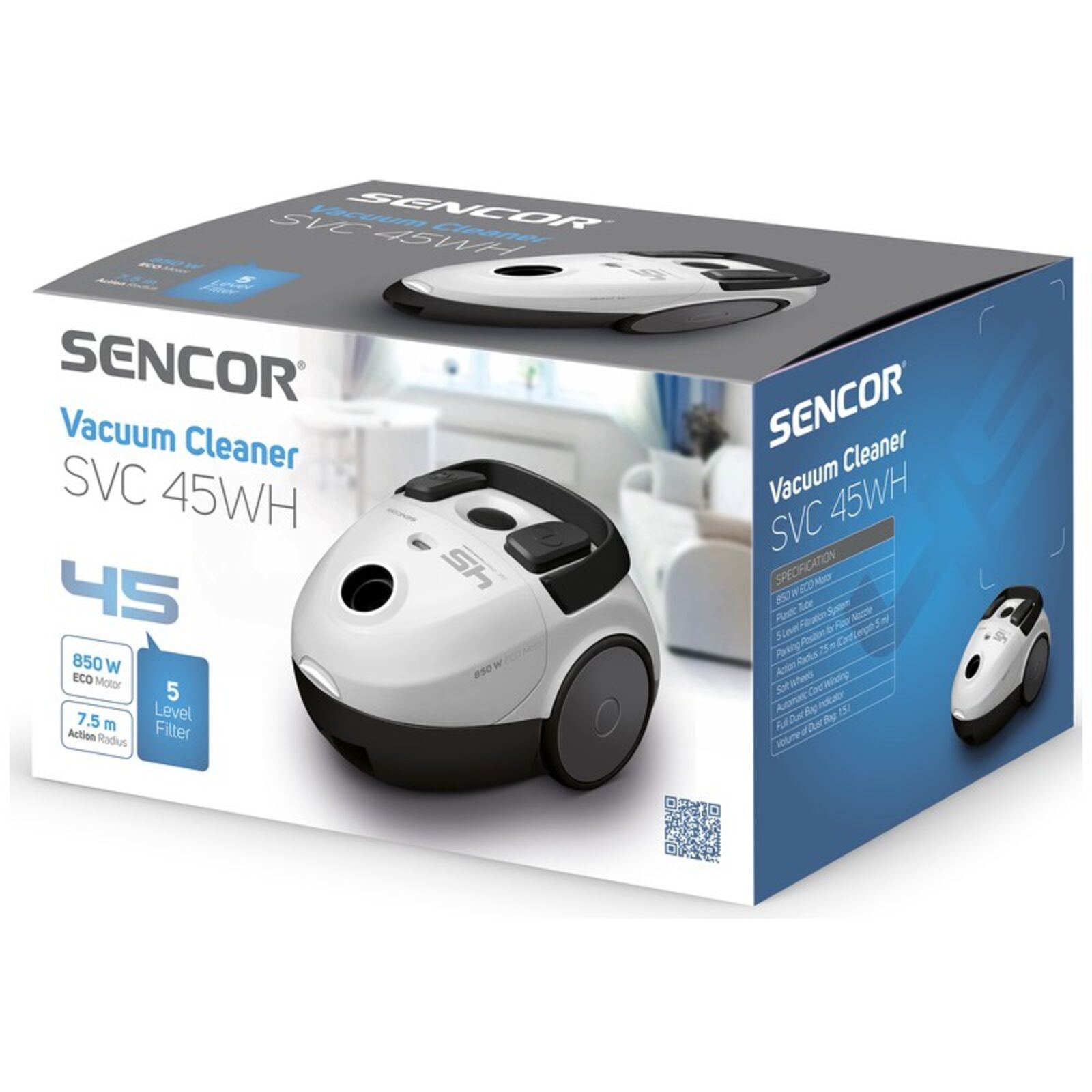 Porszívó SVC 45WH-EUE3 Sencor fehér 850W Eco motor porzsákos
