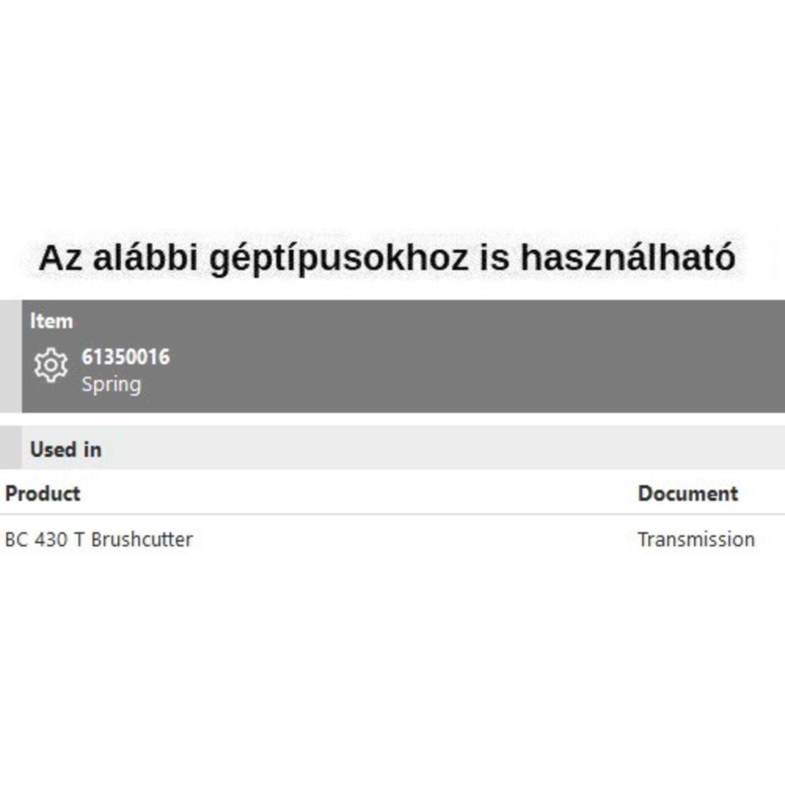 Rezgéscsillapító rugó felső BC 430T