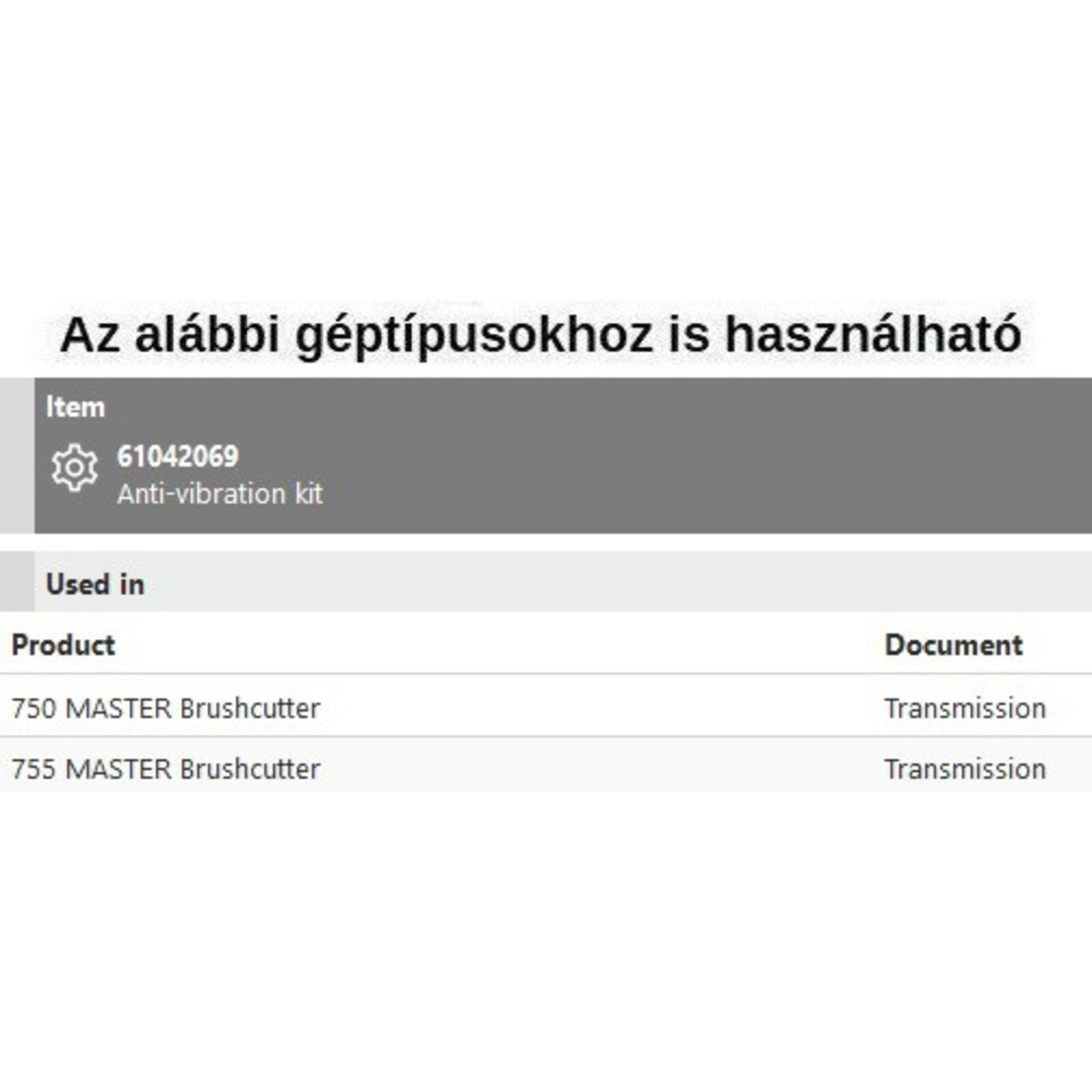 Rezgéscsillapító rugó szett (2db/szett) 750,755 - BC 550 (61040033 gumi helyett)