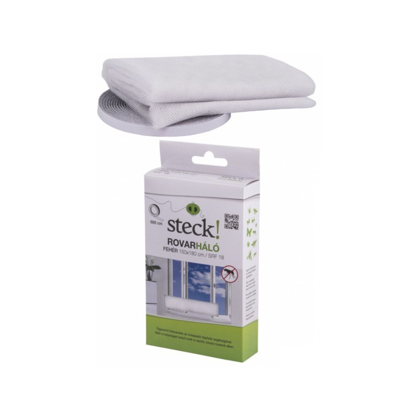 Rovarháló öntapadós tépőzárral 150x180 cm Fehér Steck SRF 18