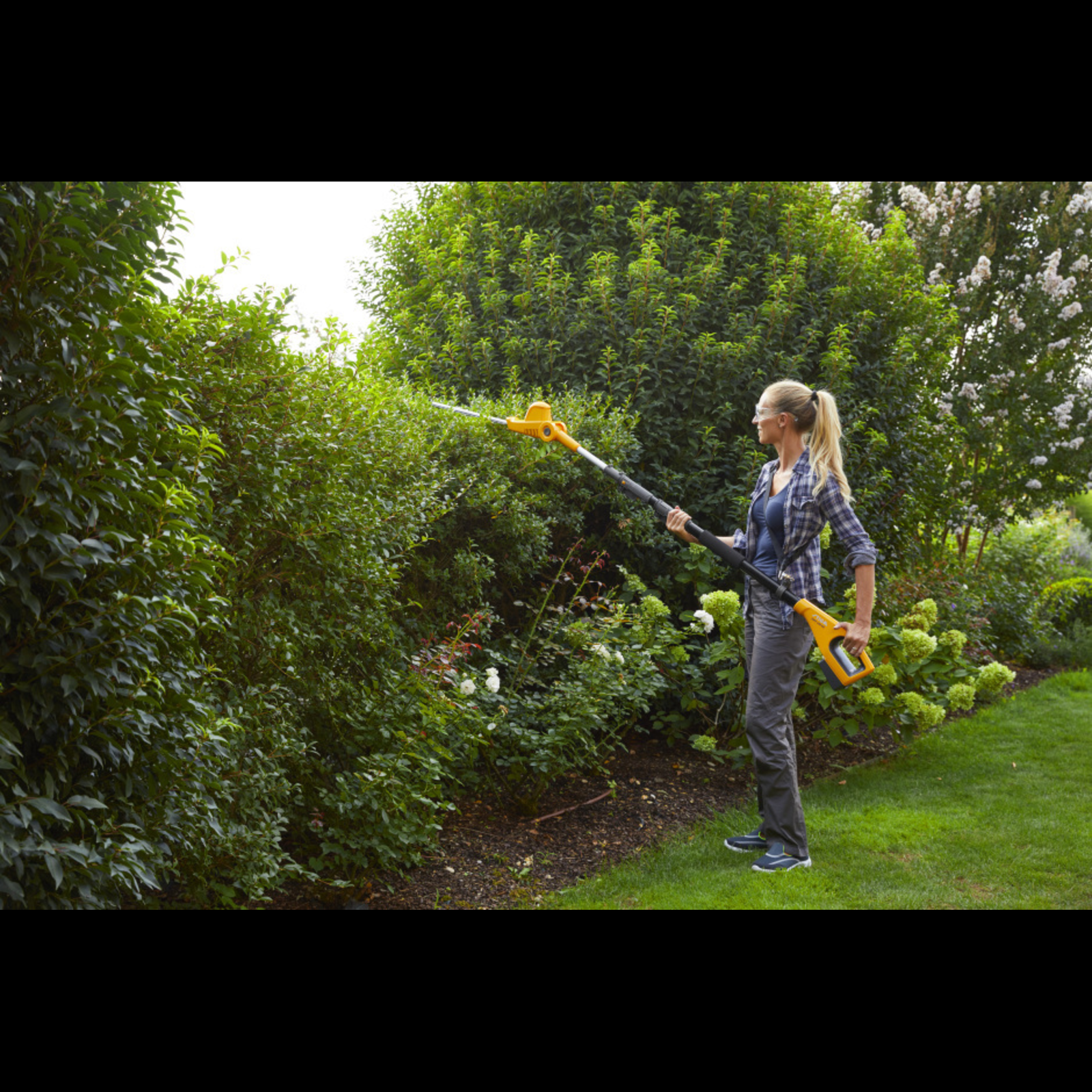 A könnyű és jól alkalmazható SMT 100 AE többfunkciós szerszámmal nem kell létrára mászni a magas bokrok és fák gondozásához. Az E-Power 20V 4Ah akkumulátorunk 70 perc vágási időt és 20 perc metszési időt biztosít egyetlen töltéssel. Csak csatlakoztassa a sövényvágót vagy az ágvágót, húzza ki a teleszkópos tengelyt, aztán gyorsan és egyszerűen elvégezheti ezeket a kertészeti munkákat - mindezt biztonságosan a földön állva. Akkumulátor és töltő tartozék.