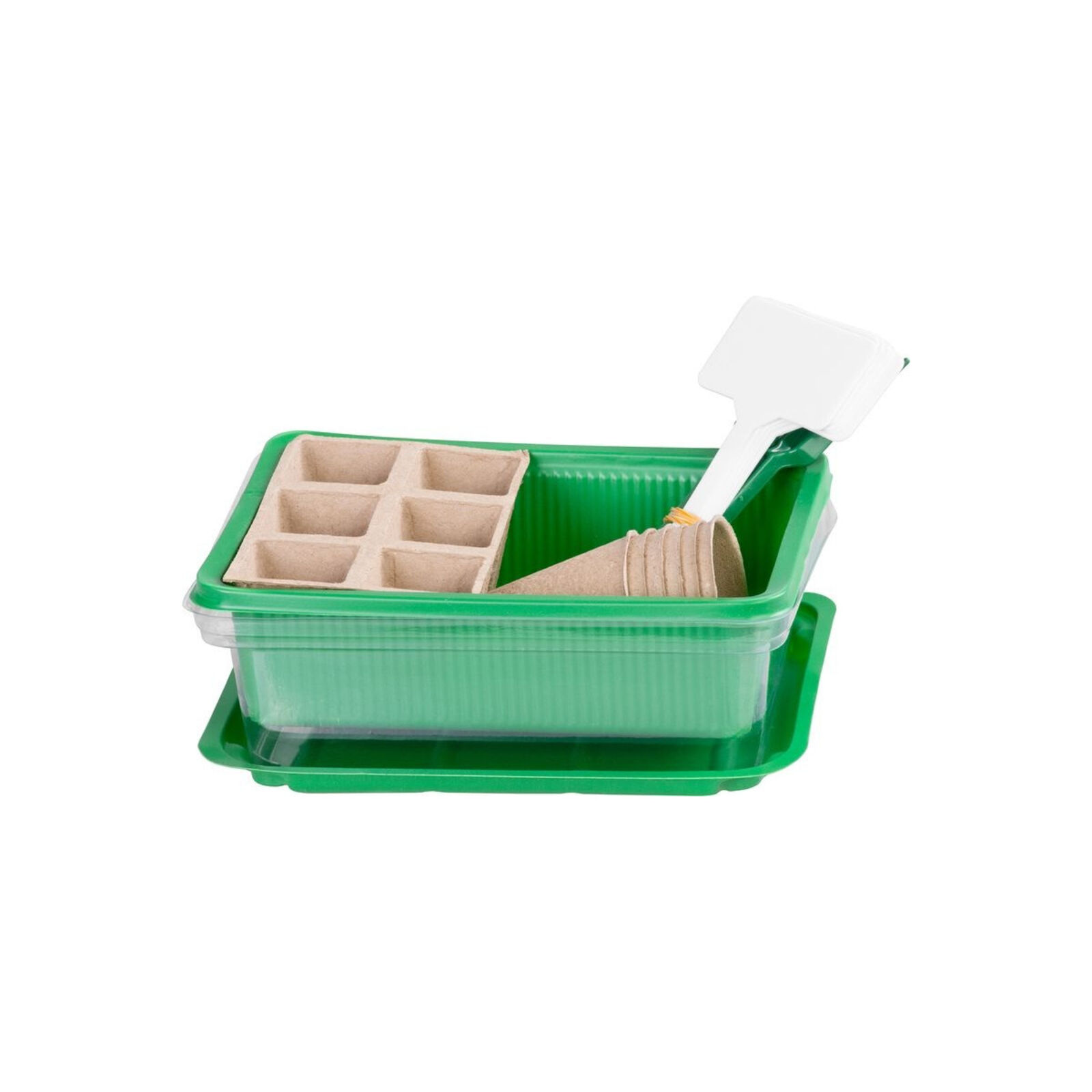 A Strend Pro Mini-Pot nagyszerű segítség palánták, fűszernövények termesztéséhez és virágdugványok gyökereztetéséhez. Alkalmas beltérben, például ablakpárkányon vagy erkélyen. A mini cserép tartalmaz egy átlátszó fedelet, egy csészealjat, egy 2x3-as papír ültetőedényt (6 palántának), egy 6x-os kerek papír ültetőedényt, egy 2in1-es simítót, egy ültető karót, egy 6x-os jelölőcímkét. A mini palánta méretei: 20x14,5x6 cm.