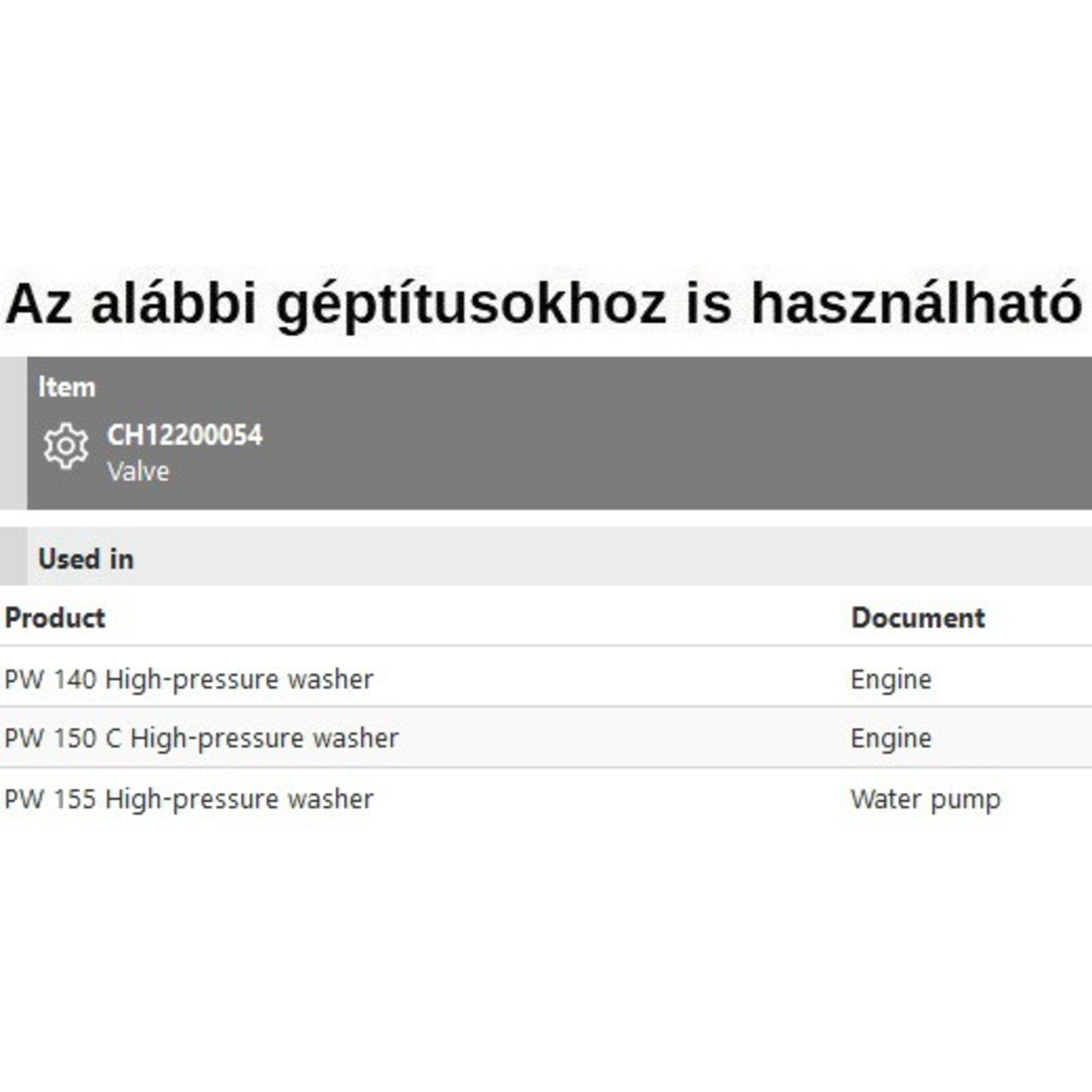 Szelep PW 140, PW150C, PW155