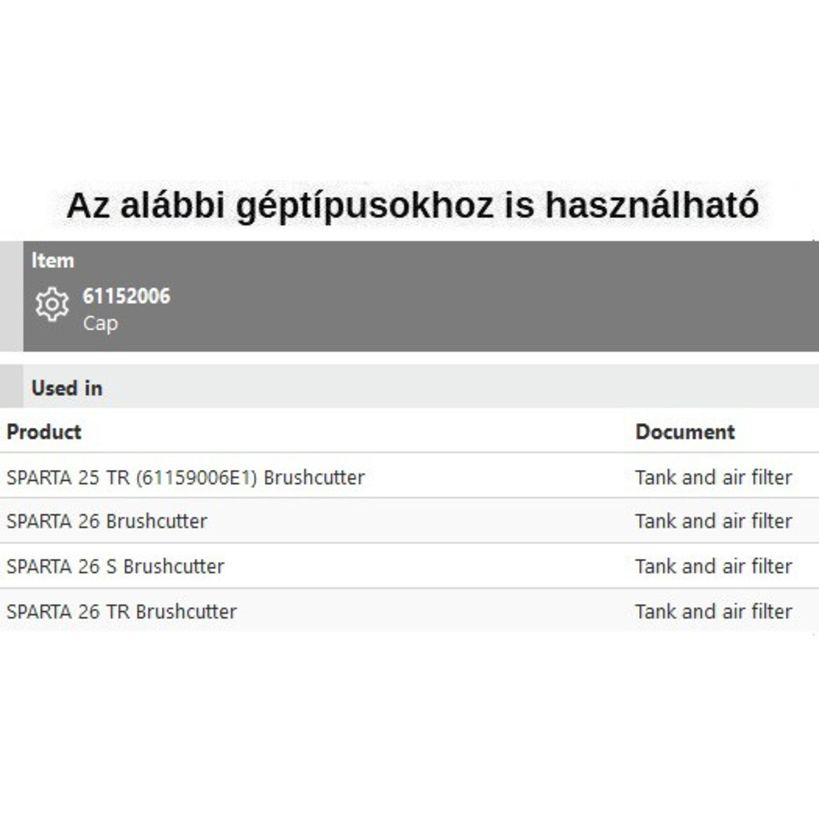Tanksapka komplett Sparta 25 TR, Sparta 26,