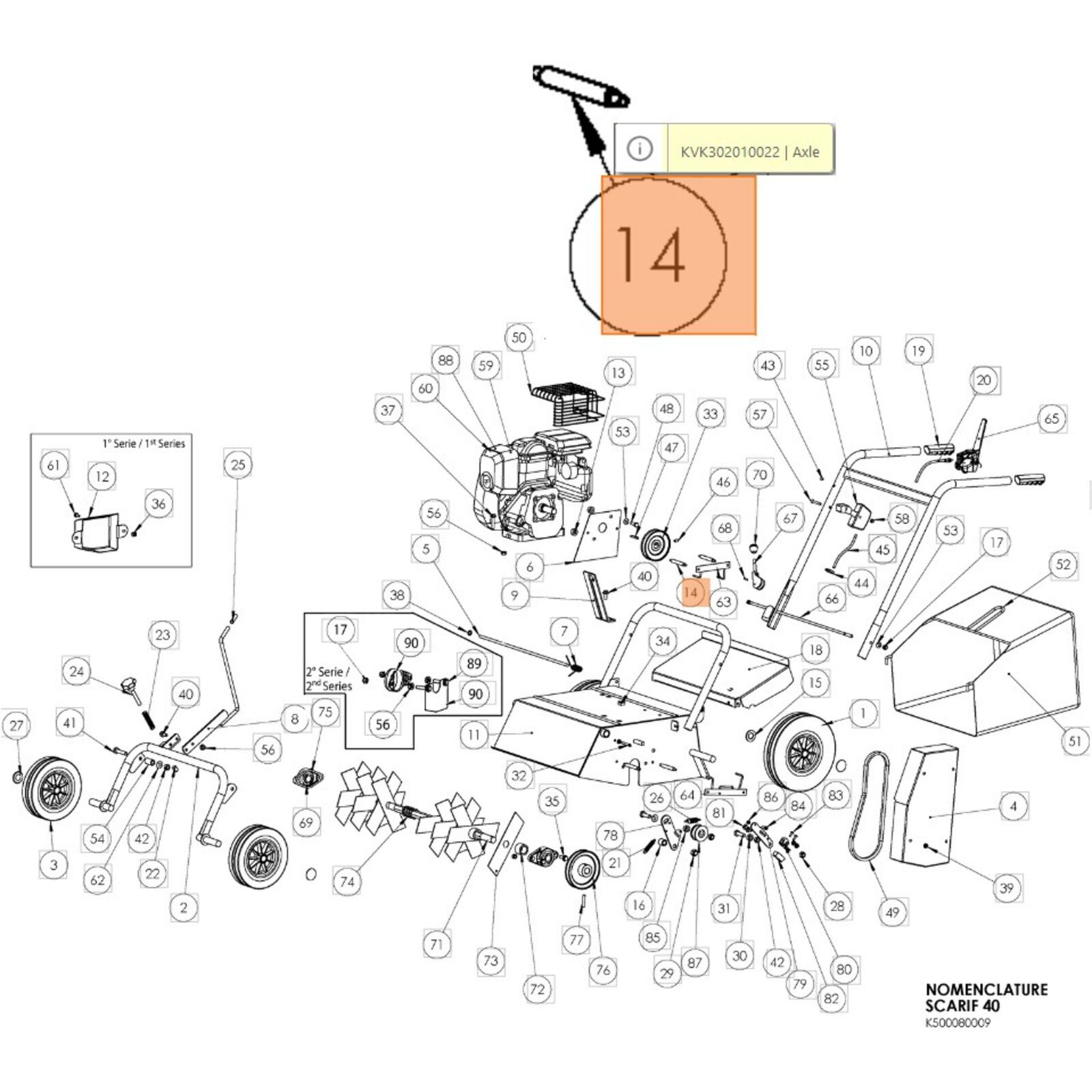 Tengely SR 40 R45, SR 40 S50, ST 50 H60 gyepeszellőztető